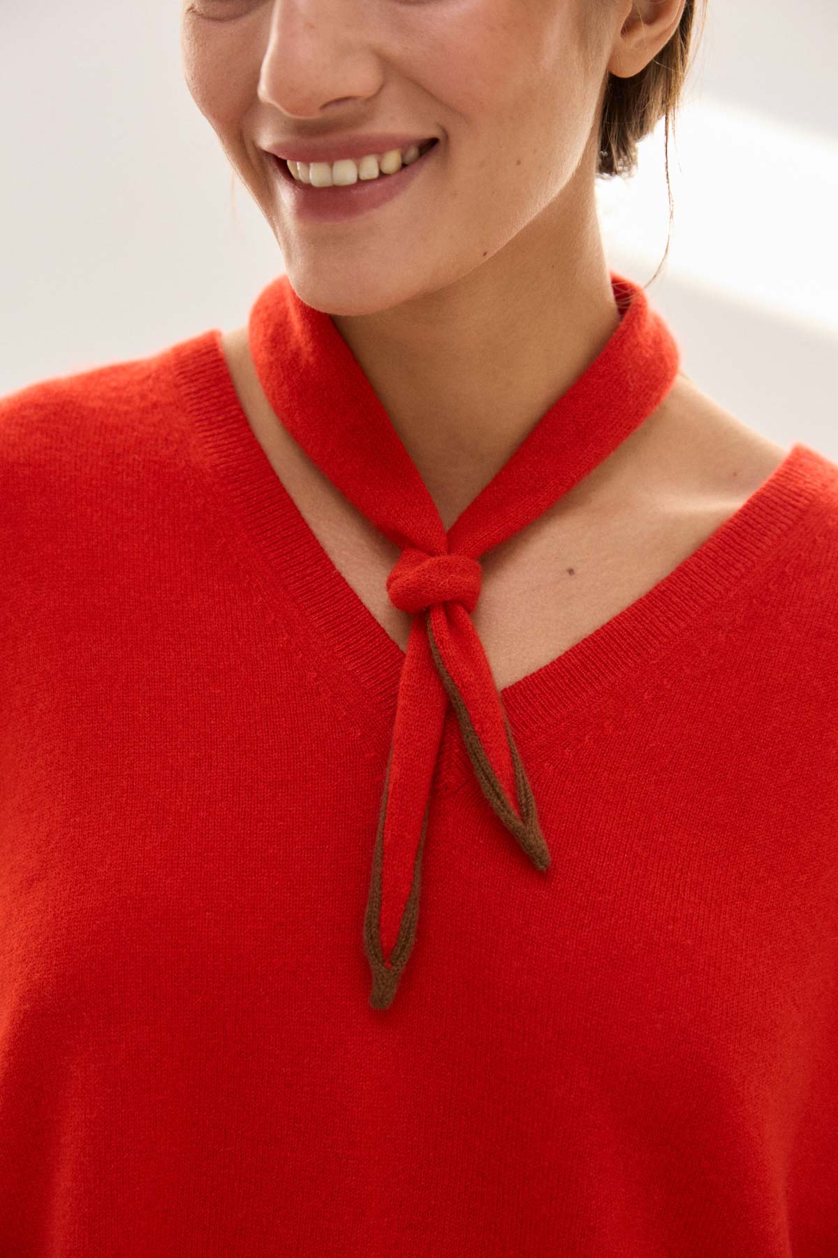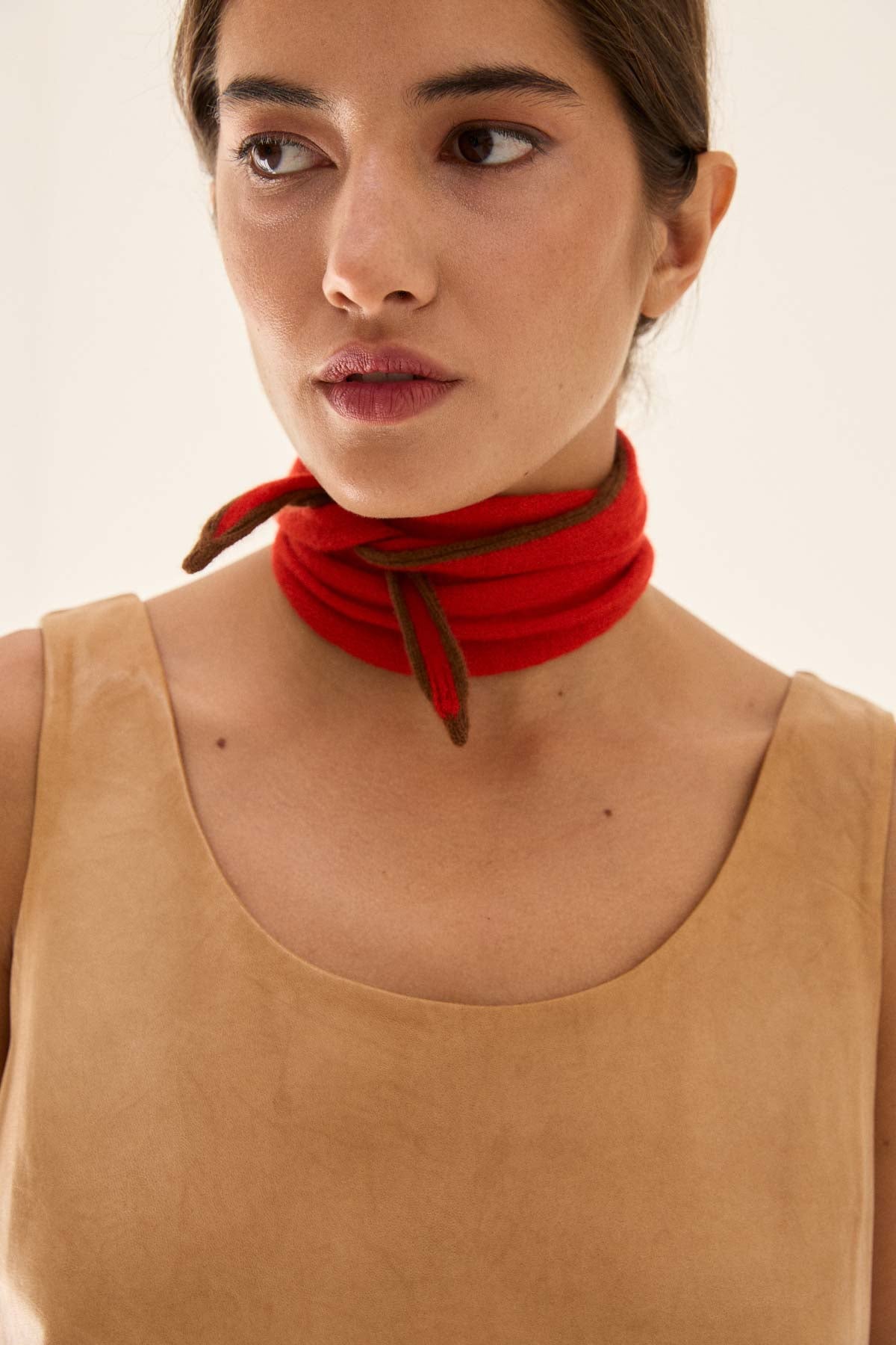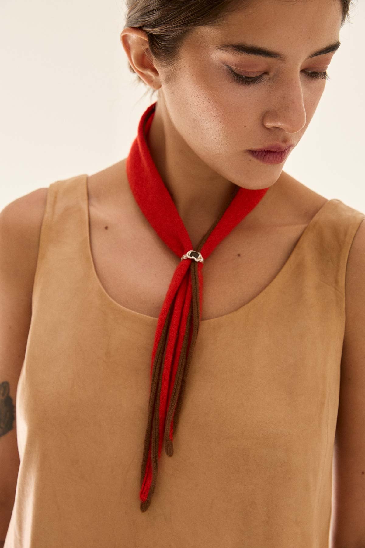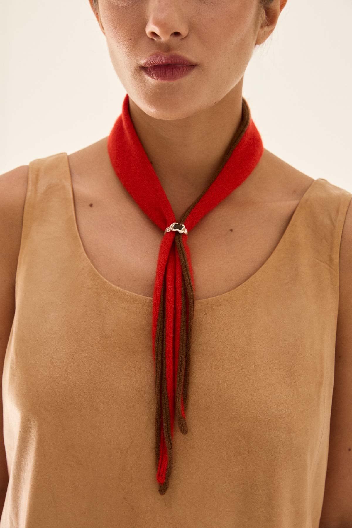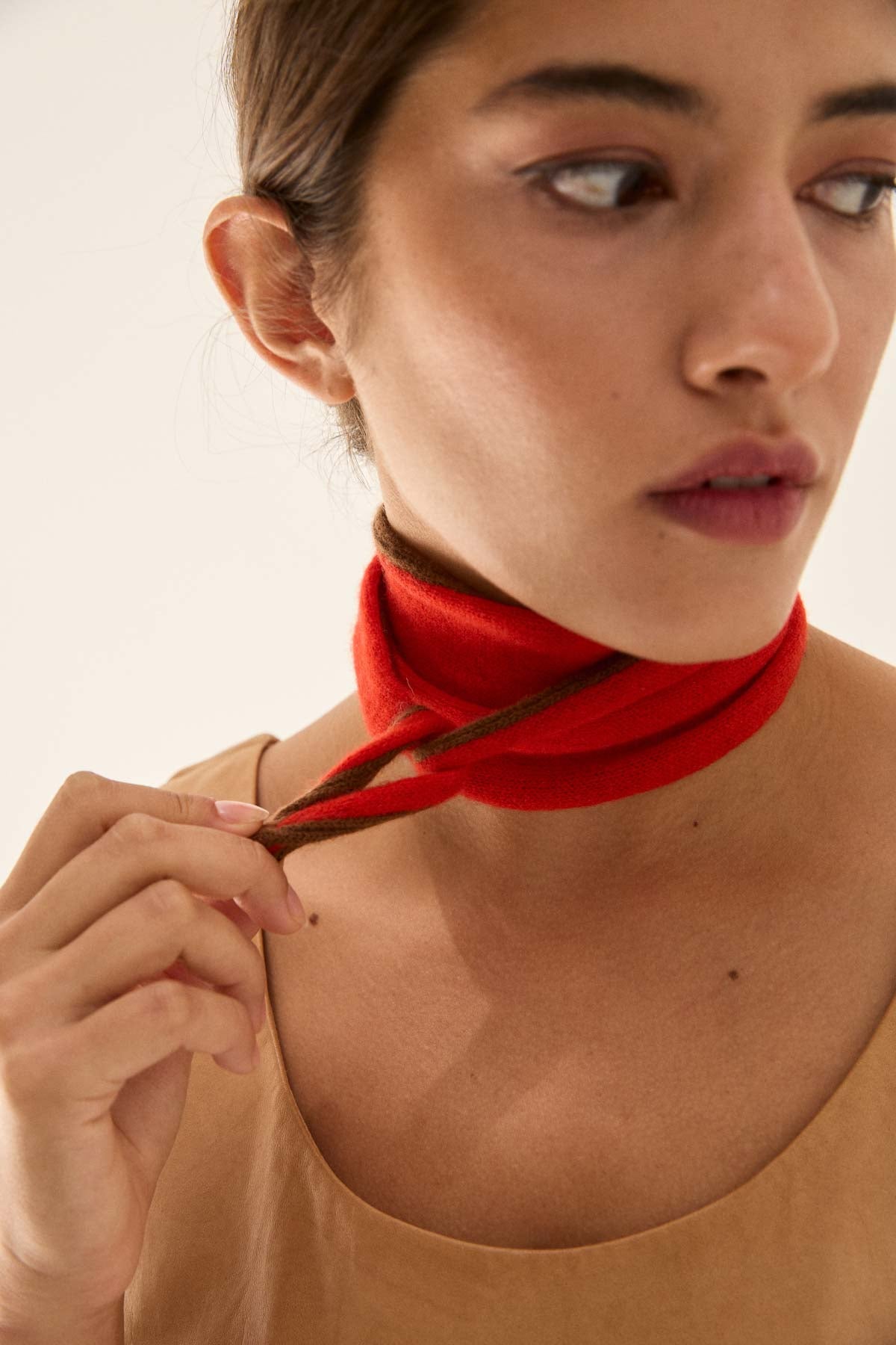 Lo que más nos gusta: Sentir su suavidad en el cuello y la combinación del rojo con el marrón.