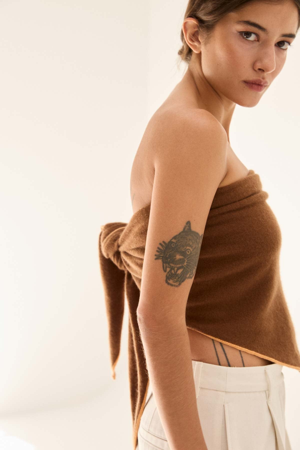Lo que más nos gusta: Sentir su suavidad en el cuello y su color marrón con el borde naranja.