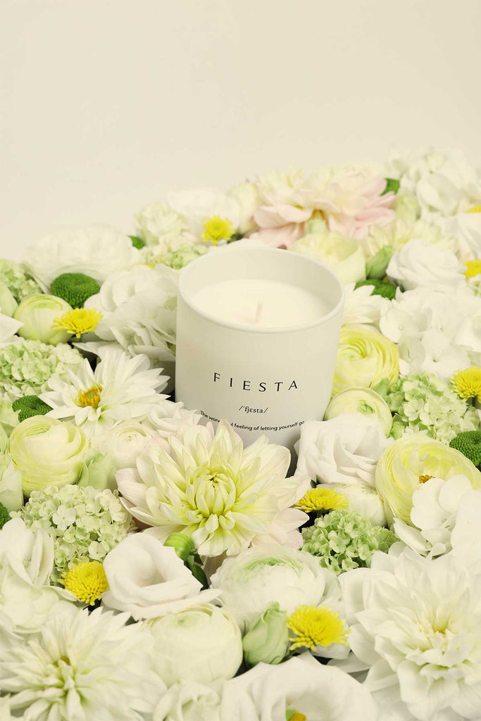 La vela Fiesta emite una fragancia fresca y cítrica, creada para que te transporte caminando por un campo en primavera o verano. Destacarás aromas de lima, bergamota, iris, tomillo y vetiver.