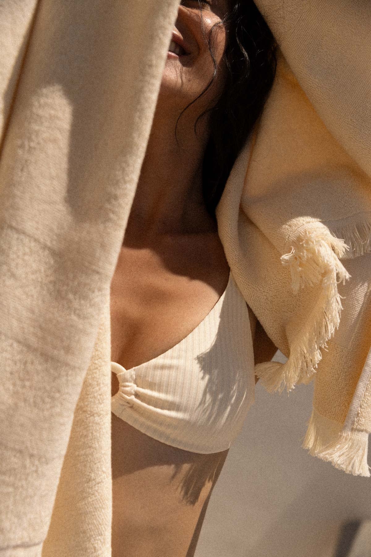 Este bikini pertenece a la colección ESSENTIALS y está diseñado en colaboración con mint&rose. Esta colección aporta modelos de líneas saves y tonos neutros sin dejar de lado el estilo más Robin.