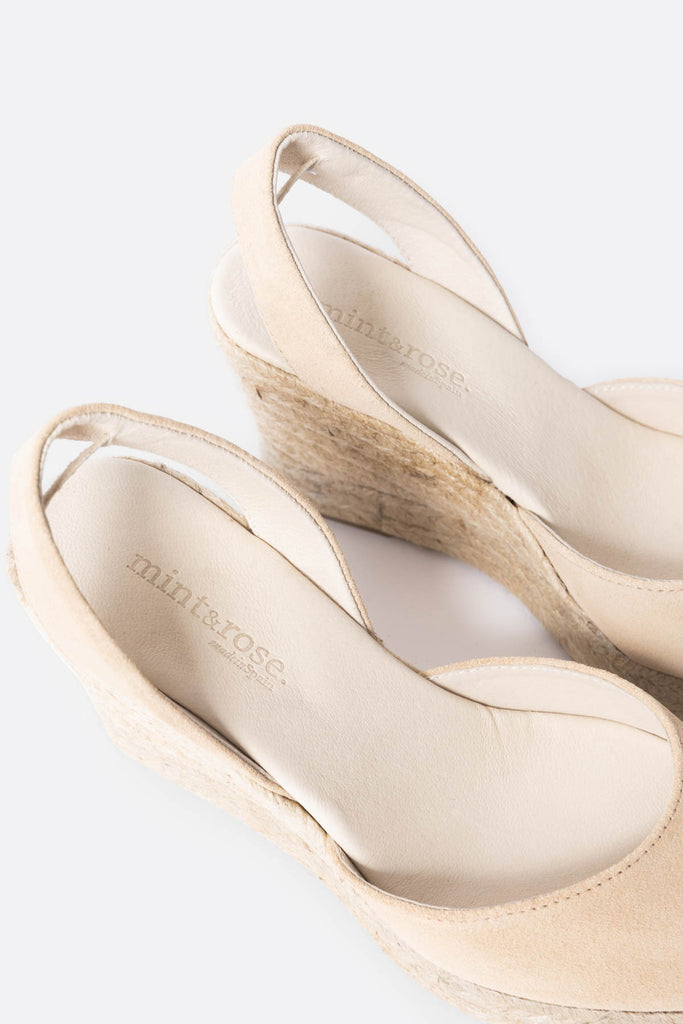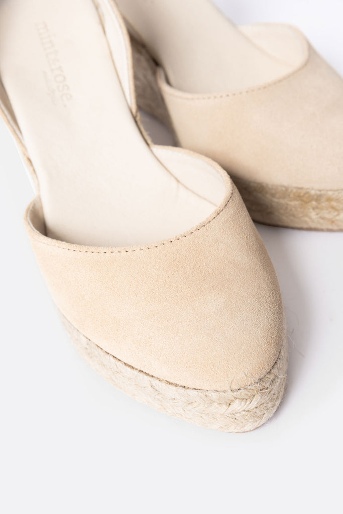 Alpargata cuña alta en piel serraje beige - 9 cm