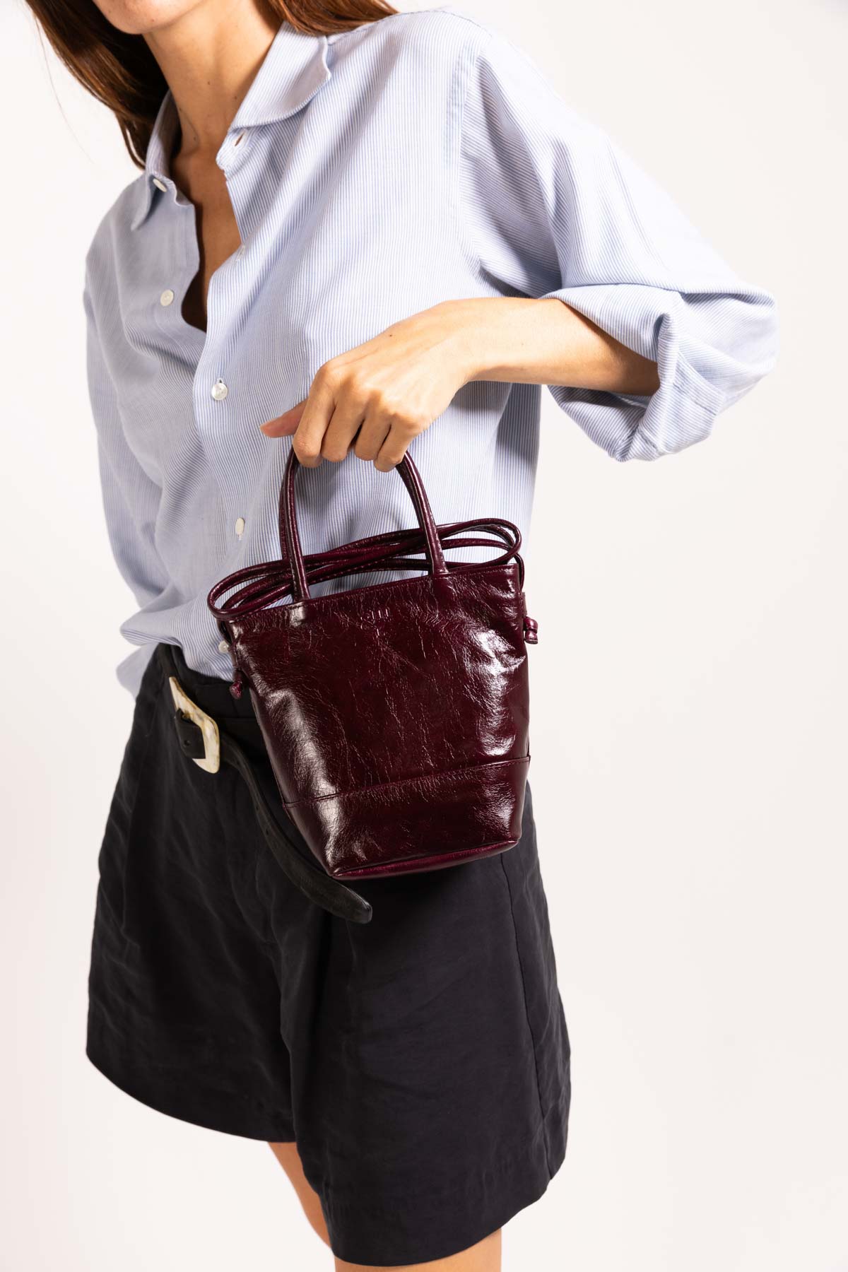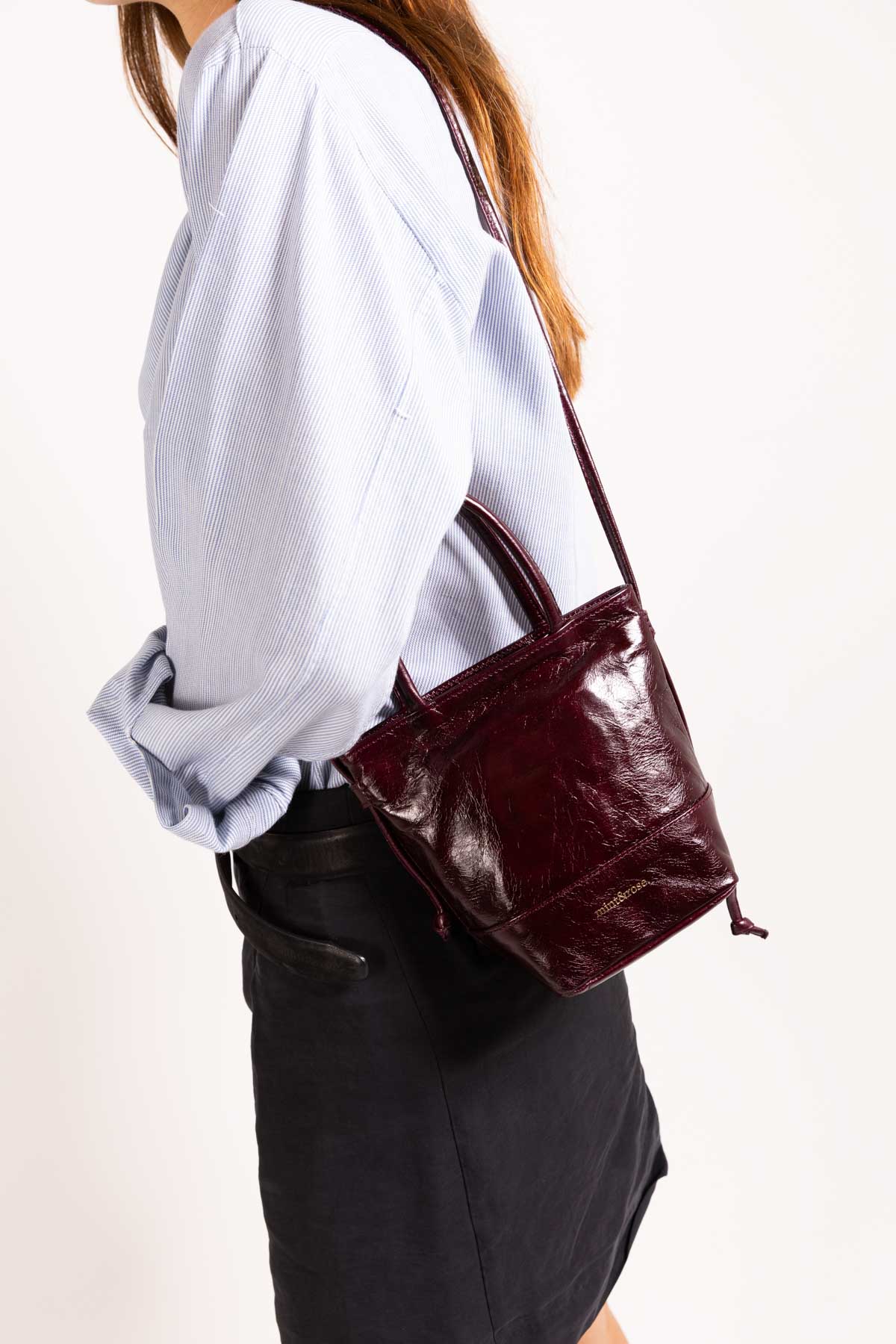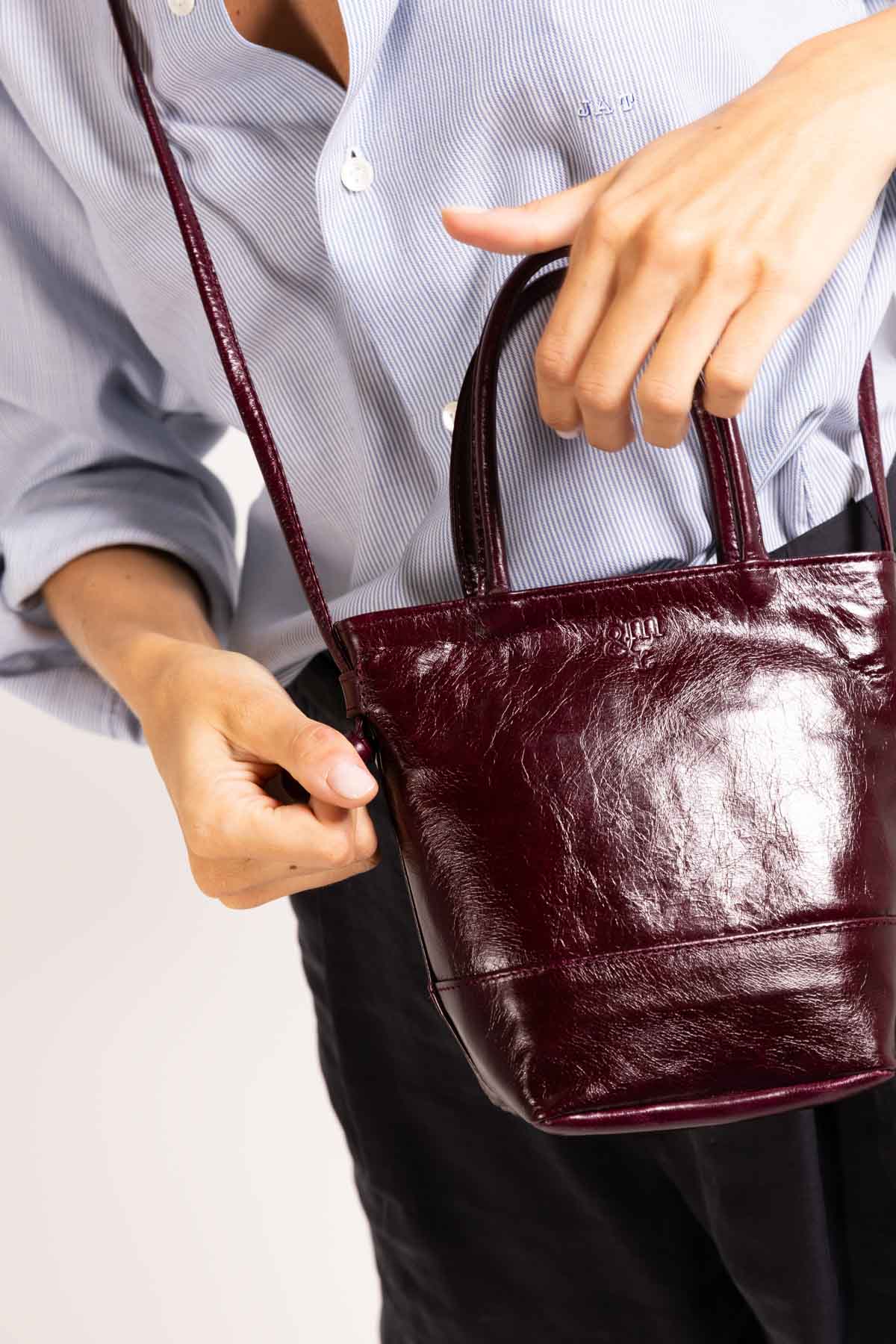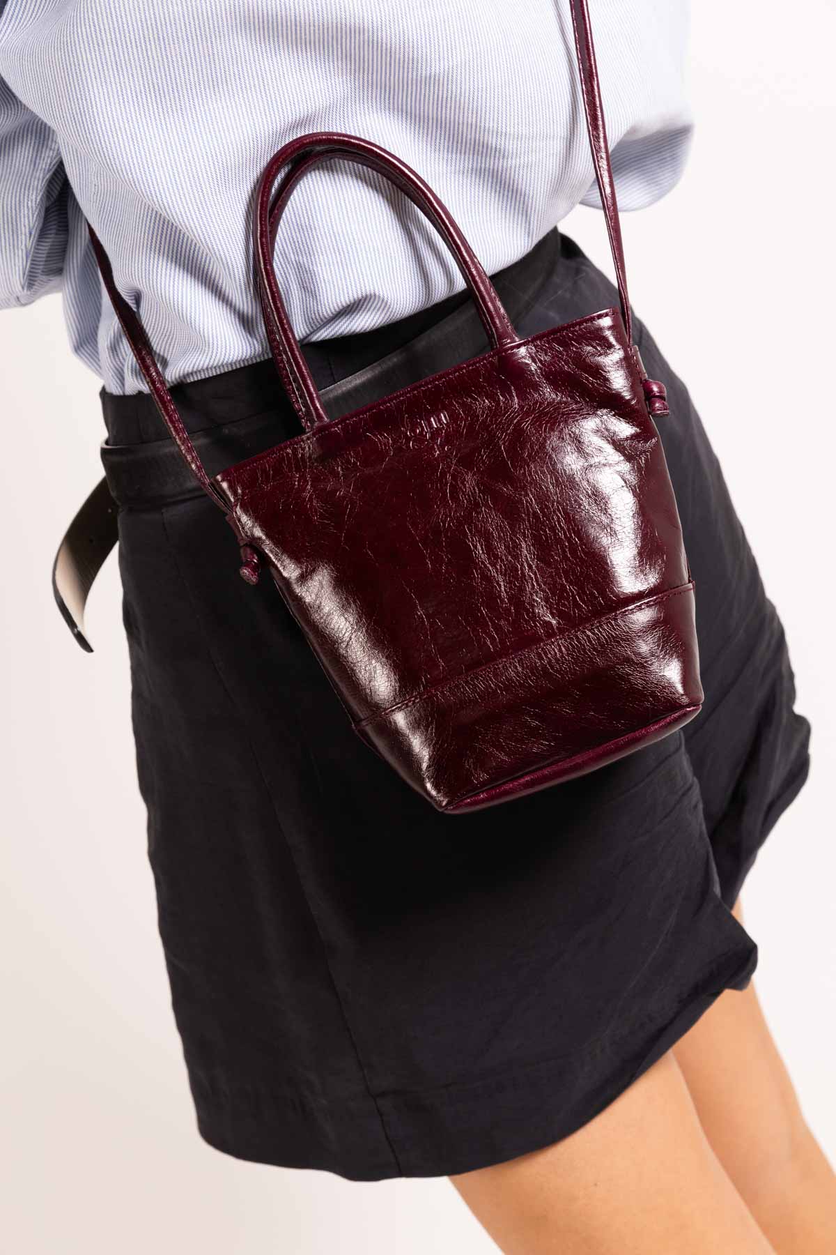 Bolso pequeño con doble asa de piel burdeos personalizado