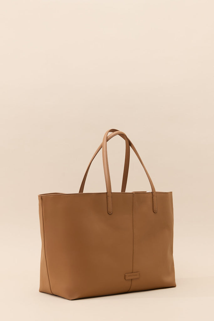 Este bolso shopper de piel tiene doble asa, costuras decorativas con pespuntes visibles, lujados al tono, logo grabado a fuego y un cierre interior que une sus laterales para reducir (¡o ampliar!) su tamaño. Tiene un bolsillo interior incorporado con cremallera.