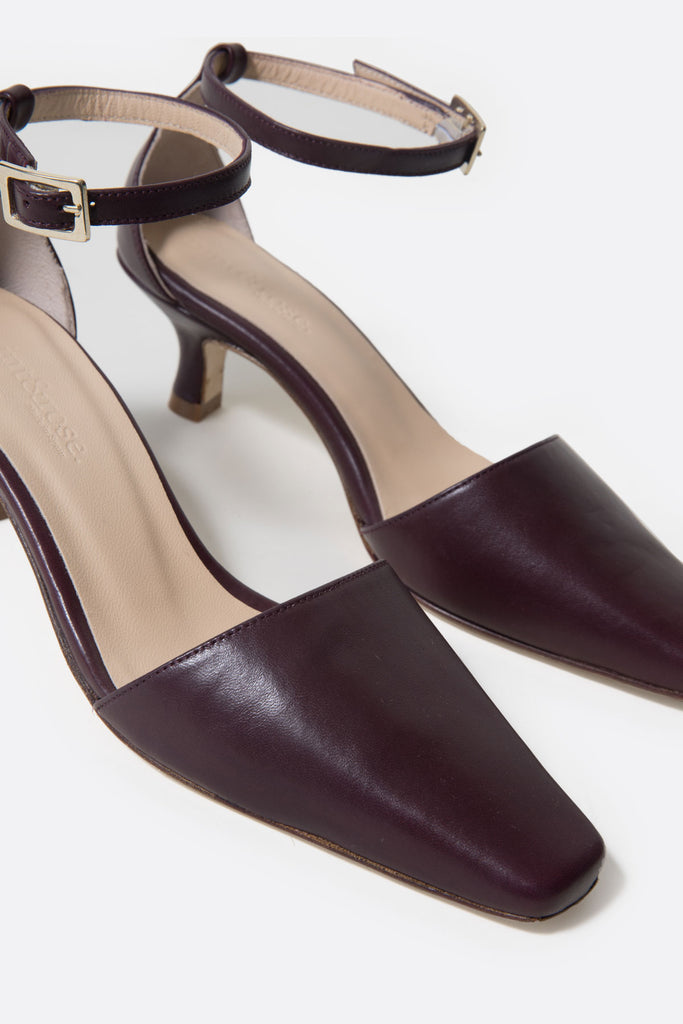 Diseño versátil y atemporal, materiales cuidadosamente seleccionados y fabricación local son la carta de presentación de Ines. Sandalias atemporales con una silueta clásica y versátil con un aire muy retro. Tienen una terminación en punta cuadrada y cerrada. Semitalonera con tira para ajustar al tobillo y cierre con hebilla dorada. Plantilla acolchada Cloud y tacón cuadrado medio de 5cm.
