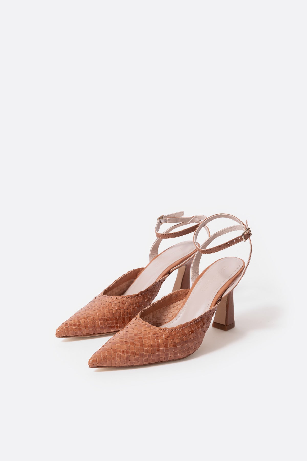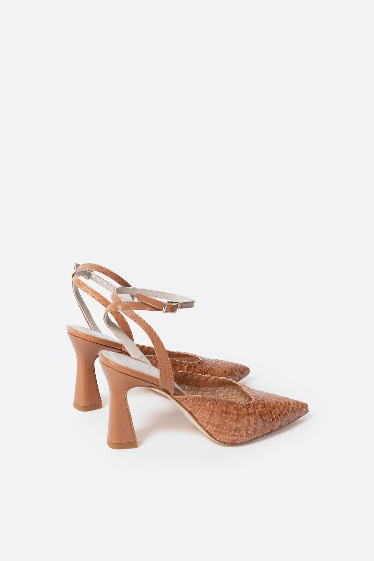 Sandalia alta trenzada en piel caramelo