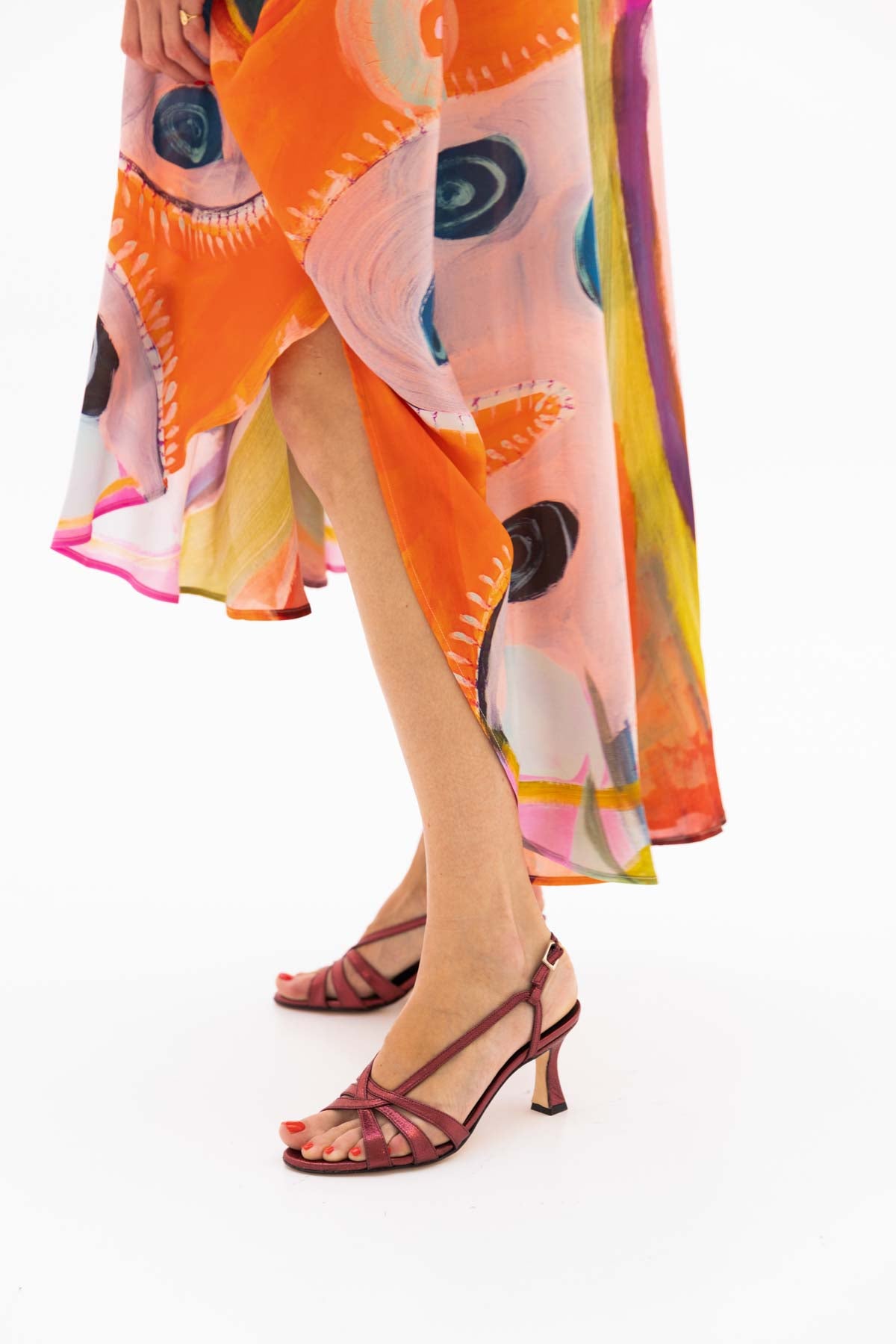 Las sandalias Adeline están fabricadas en España de forma artesanal, siguiendo técnicas de tradición centenaria. De inspiración retro; sus tiras suavemente redondeadas, su diseño clásico pero atemporal y su tacón acampanado de 7 cm las convertirán en un básico en tu armario.