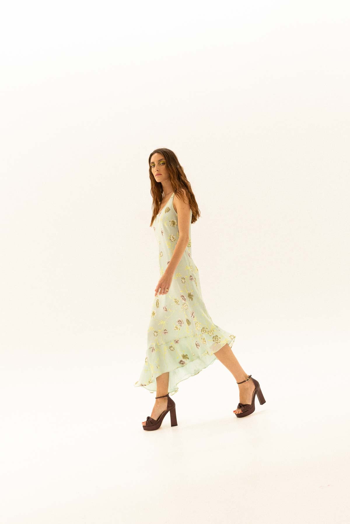 El anudado en la parte delantera ha sido meticulosamente pensada para combinar sofisticación y funcionalidad y realzar la estética del pie. La pulsera fina del tobillo alarga las piernas al dejarlas prácticamente al descubierto. Su tacón tiene 12 cm (incluyendo la plataforma delantera de 3 cm), pero está diseñado para proporcionar una elevación sutil y elegante, garantizando al mismo tiempo estabilidad y comodidad para un uso prolongado. Además, cuenta con plantilla Cloud acolchada.