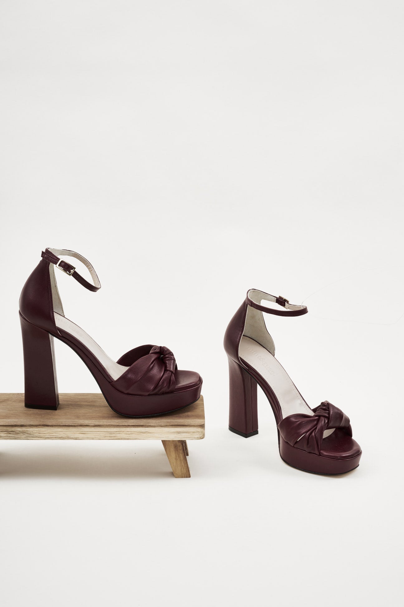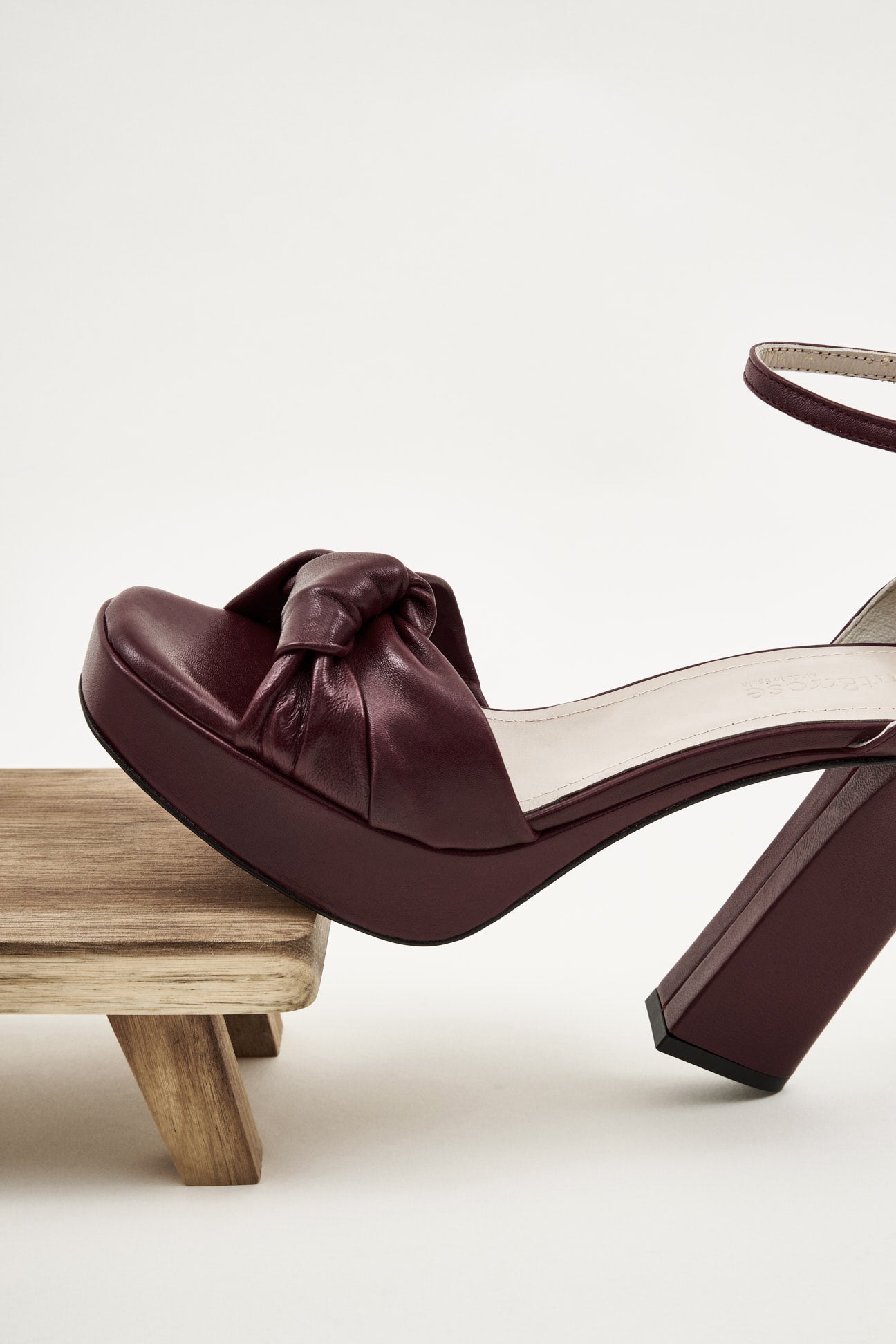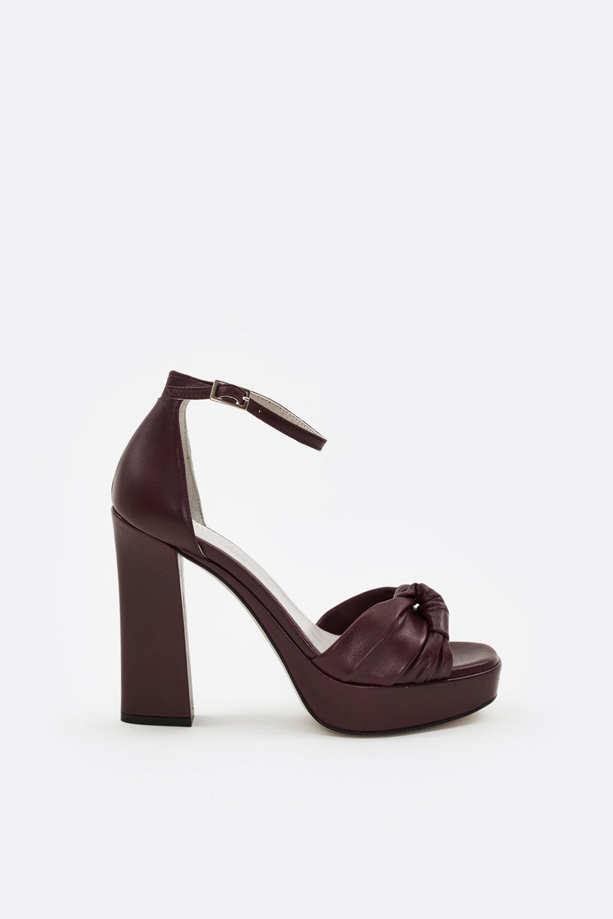 Sandalia alta con plataforma en piel burdeos