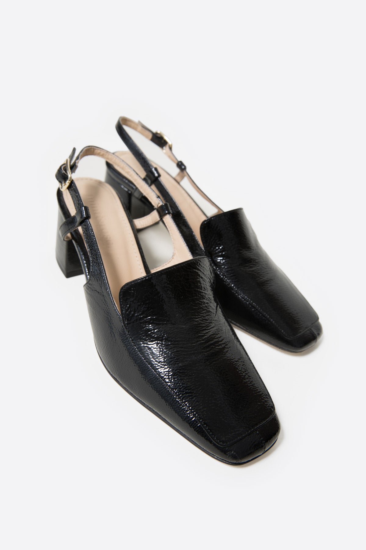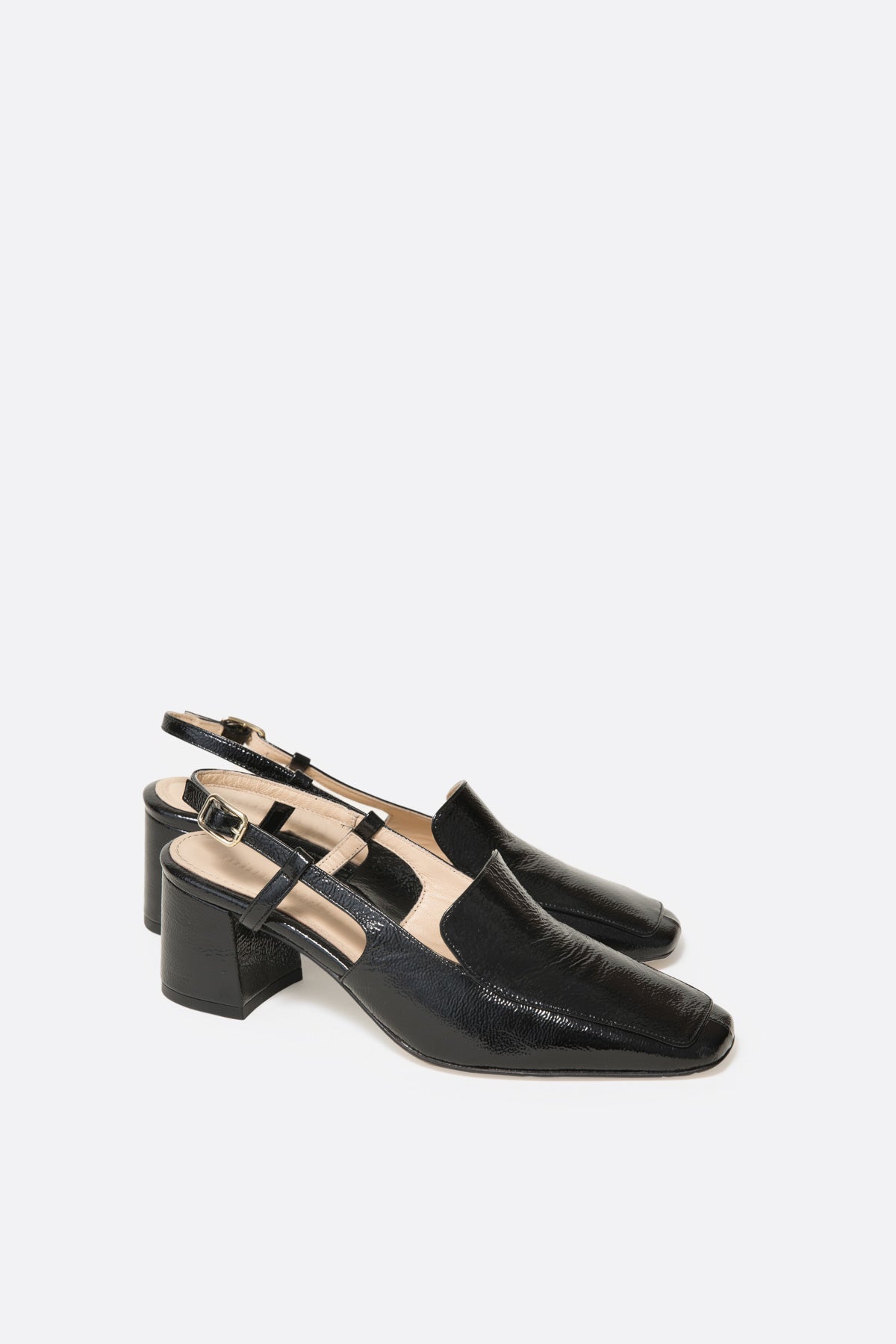 Lo que más nos gusta: su tono negro acharolado atemporal muy fácil de combinar. Nos gustan con vaqueros recortados o sastrería.