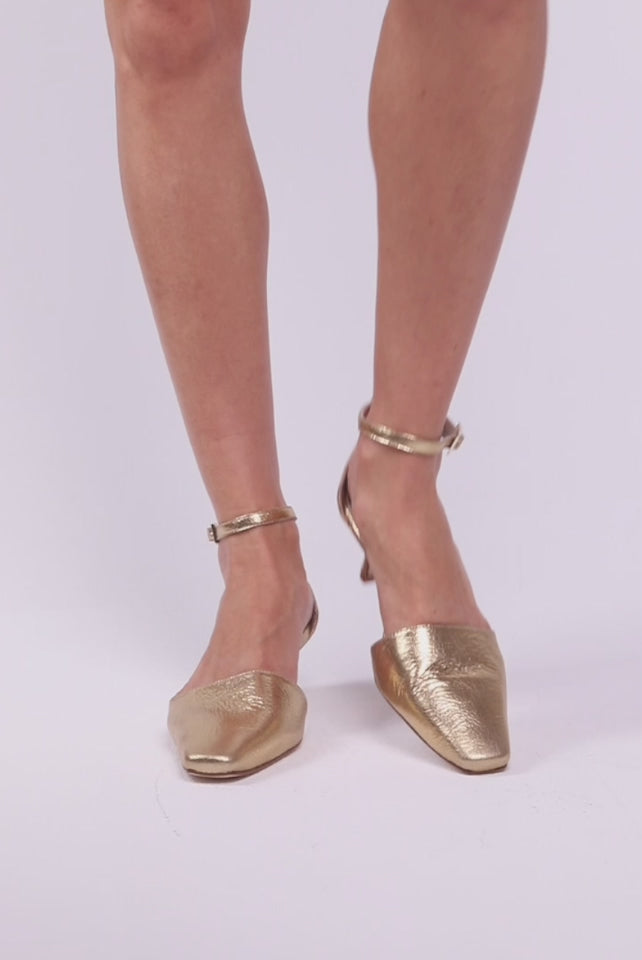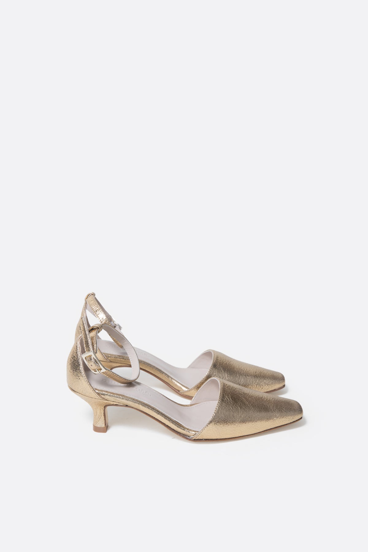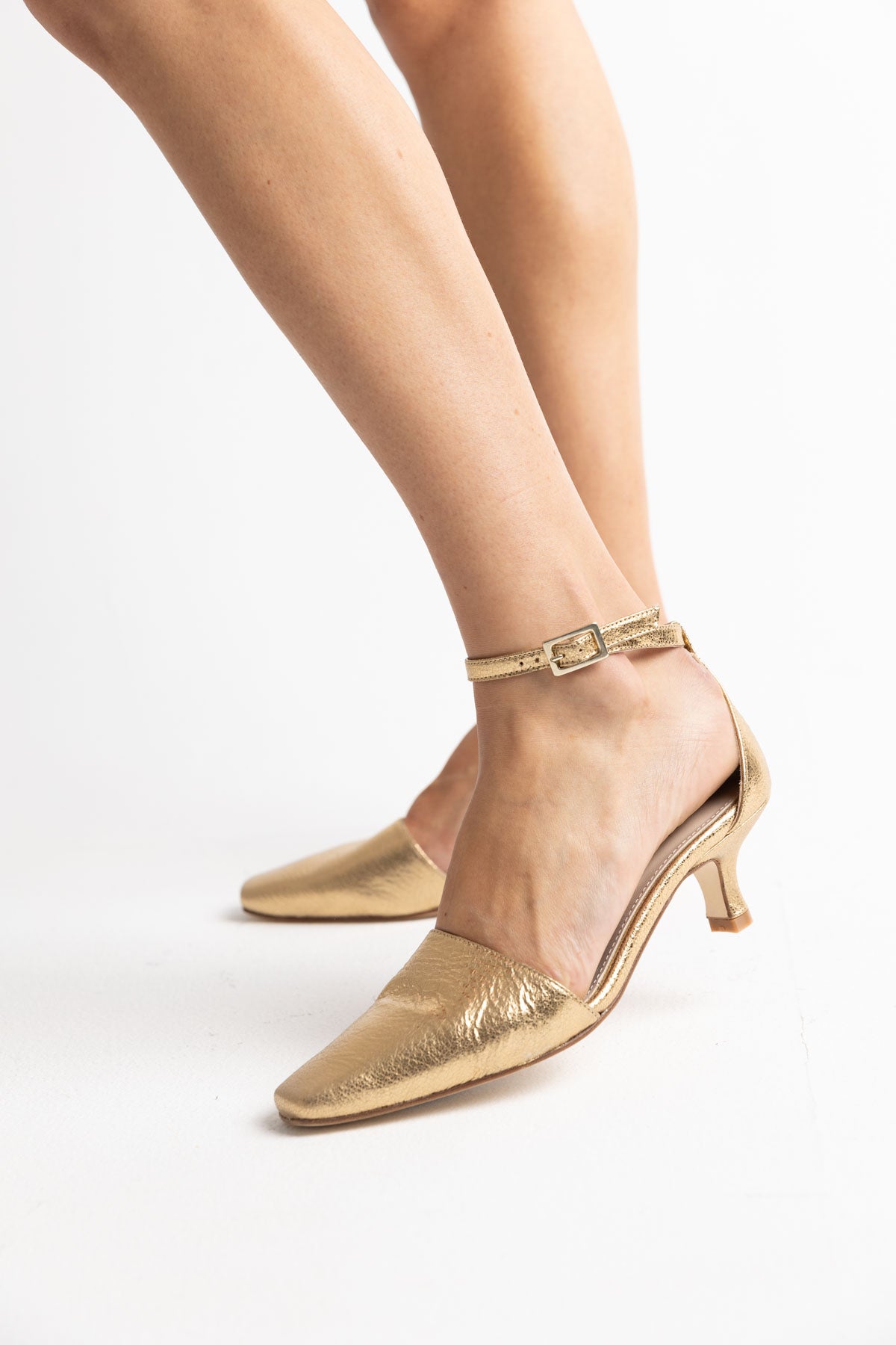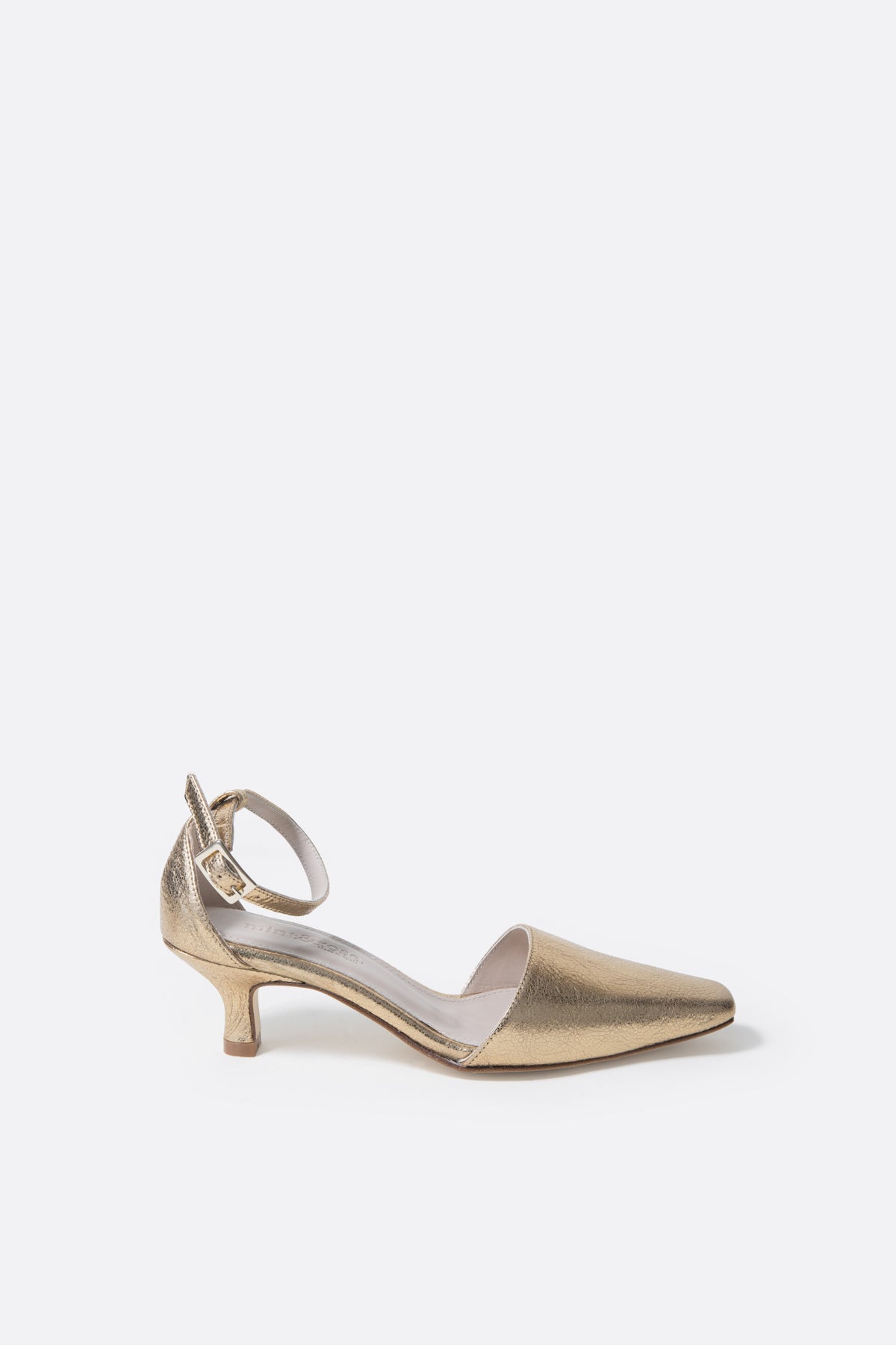 Diseño versátil y atemporal, materiales cuidadosamente seleccionados y fabricación local son la carta de presentación de Inés. Sandalias con una silueta clásica y versátil con un aire muy retro. Tienen una terminación en punta cuadrada y cerrada. Semitalonera con tira para ajustar al tobillo y cierre con hebilla dorada. Plantilla acolchada Cloud y tacón cuadrado medio de 5cm.