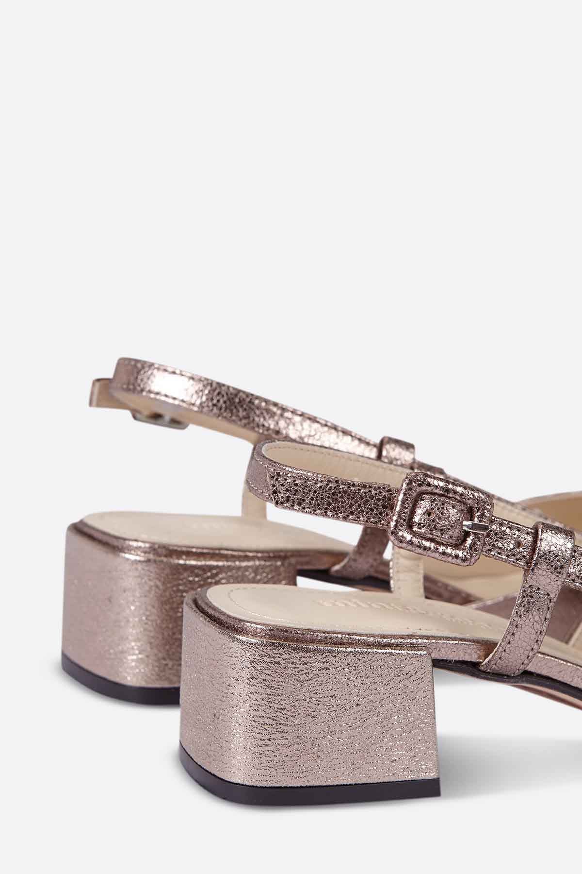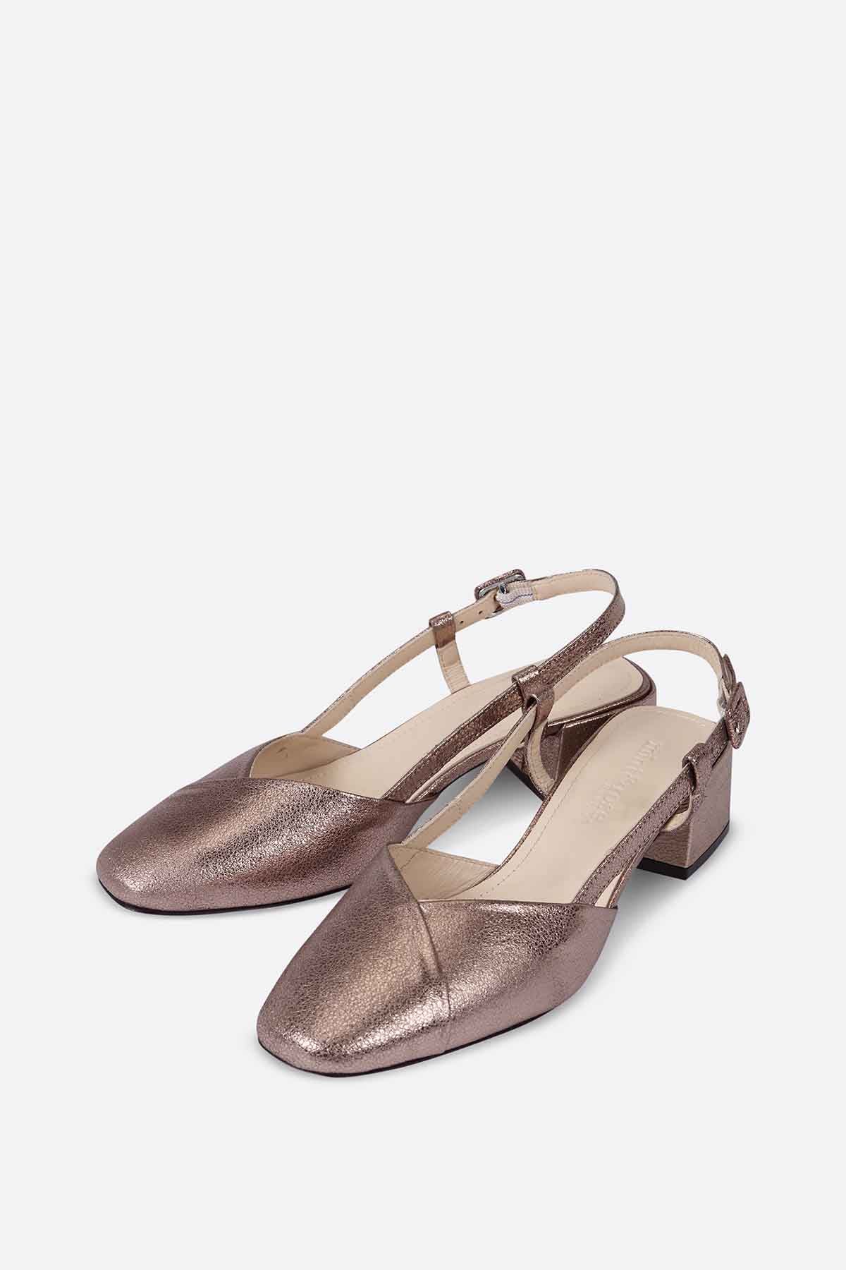 Sandalia baja destalonada en piel oro rosa