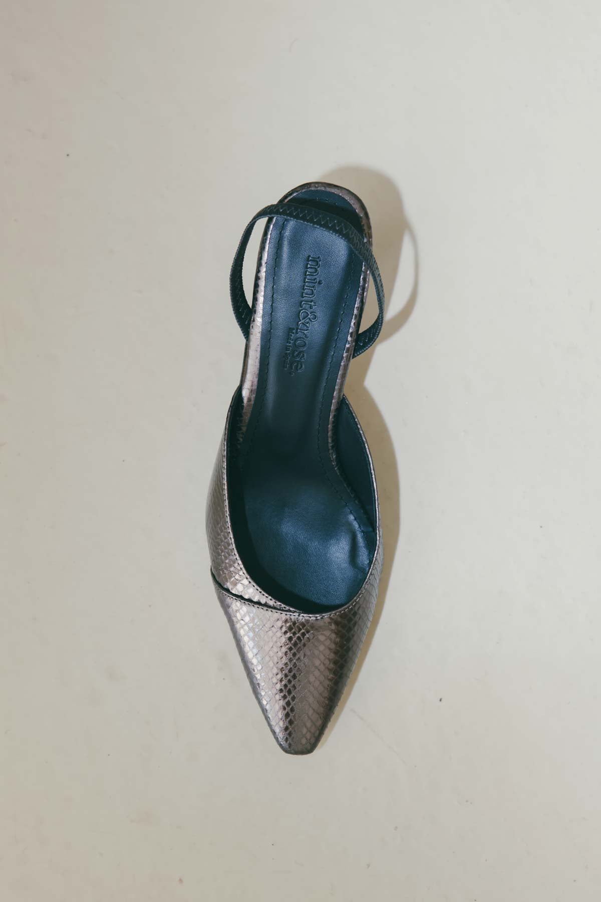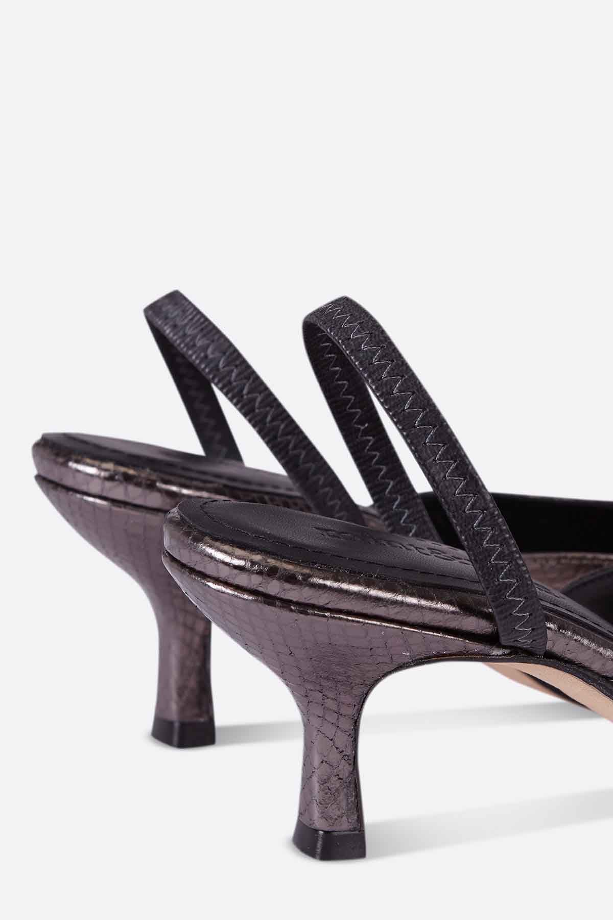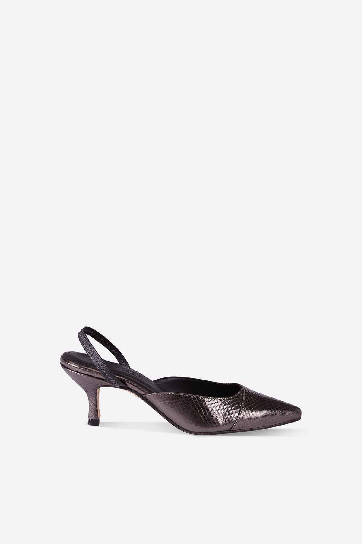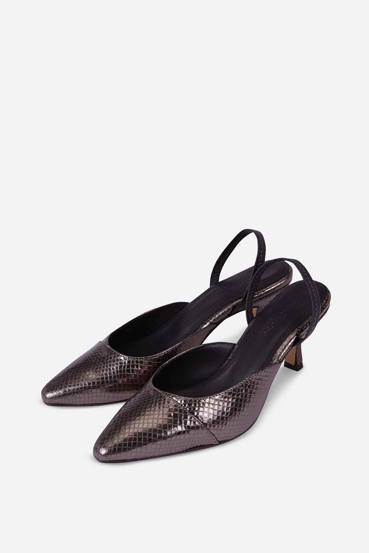 Nima es un salón renovado con puntera afilada pero ligeramente redondeada. Proporciona el toque final perfecto para tus conjuntos de noche o te acompaña en tu día a día en la oficina. Tiene una goma para talón o empeine, plantilla Cloud acolchada y tacón de 6 cm.
