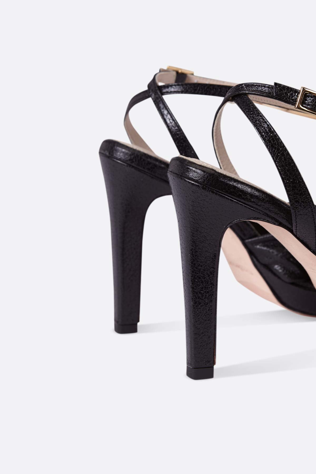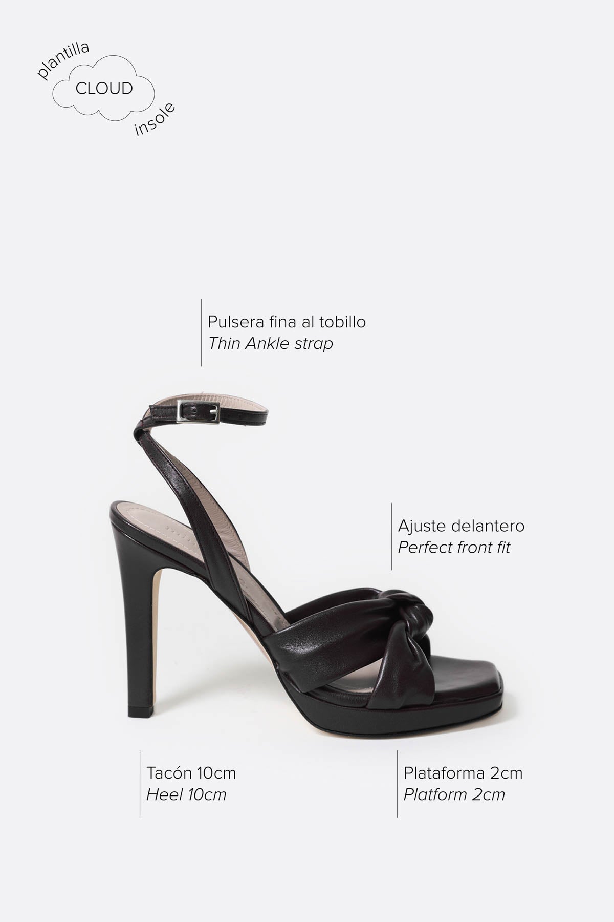 Puntera ligeramente cuadrada, tira delantera anudada y pulsera cruzada baja al tobillo. Tiene un tacón fino de 10 cm (incluye plataforma acolchada con altura de 2 cm) y plantilla Cloud acolchada para la máxima comodidad.