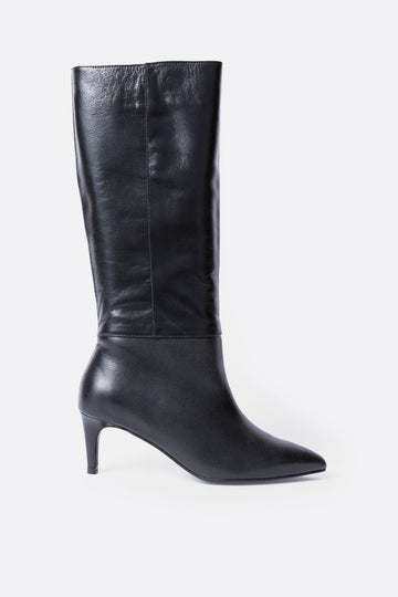 Bota alta de piel negra con tacón