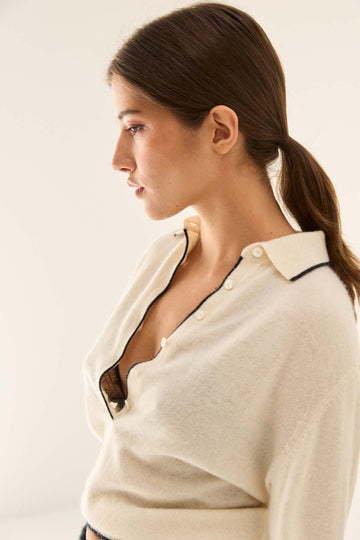 Las prendas de Stone están confeccionadas con el cashmere más suave y de la mejor calidad. Hechas en Mongolia, proporcionan una agradable sensación de calidez y una suavidad incomparable. Polo de cuello cerrado con cuello y abotonadura en el escote. Remate de canalé en puños y bajo.