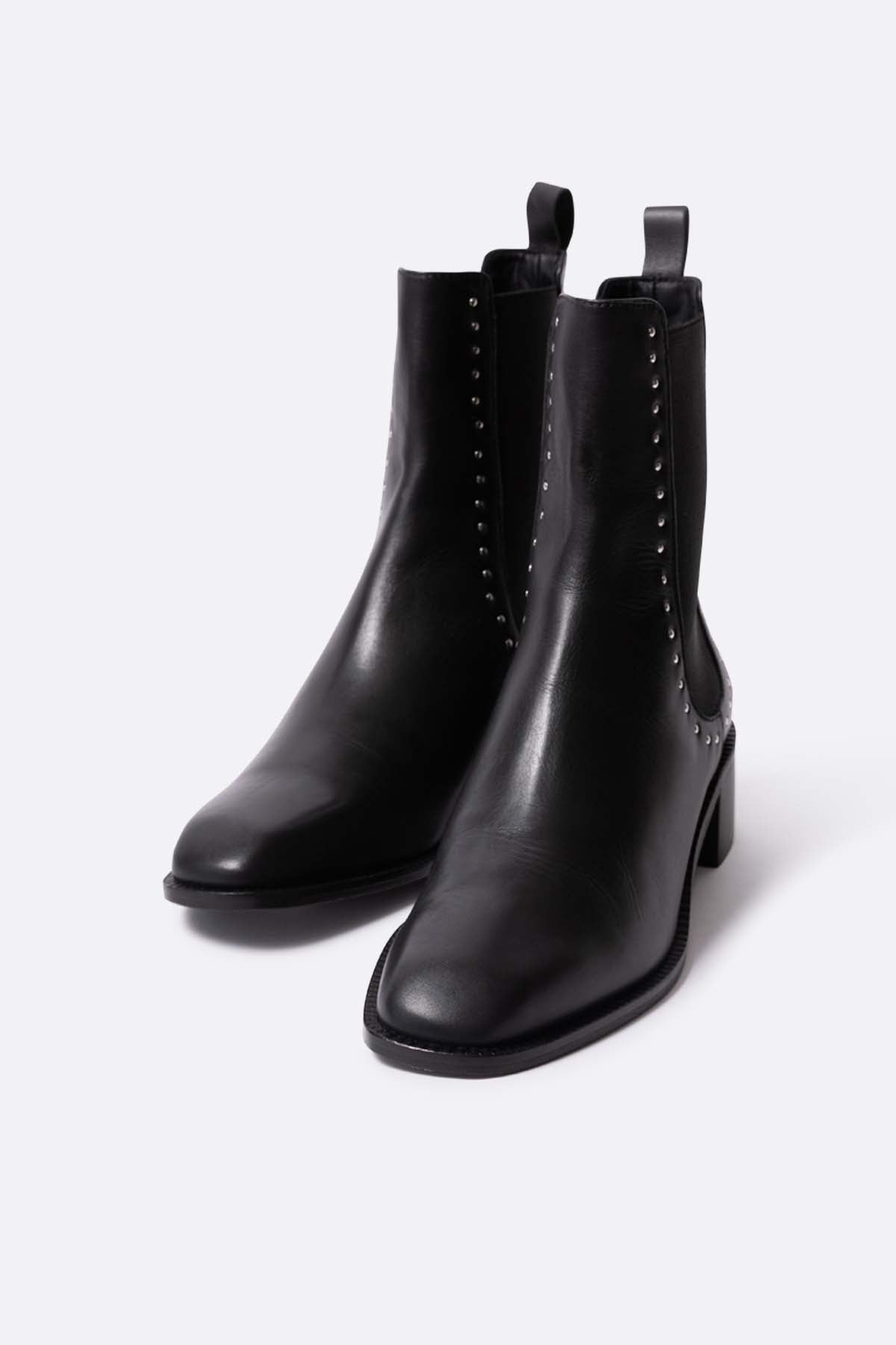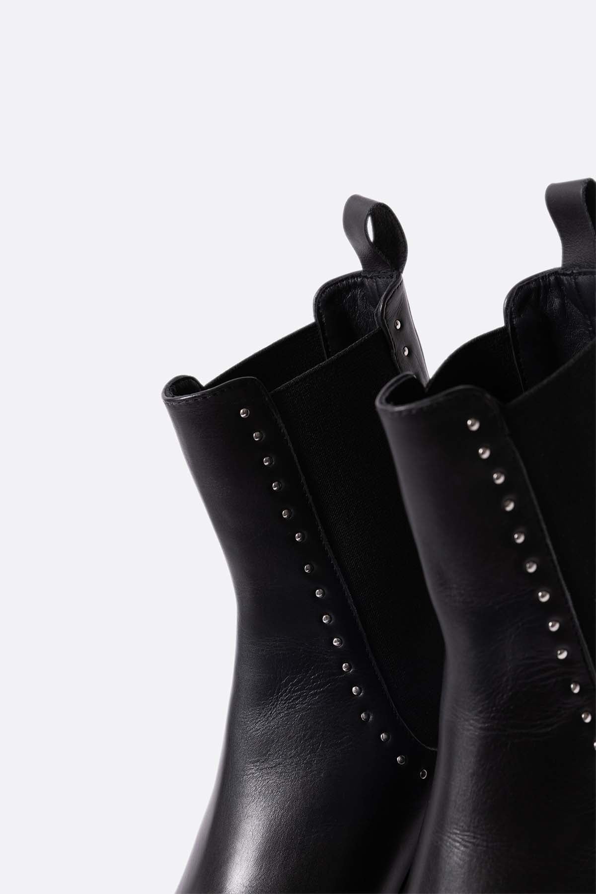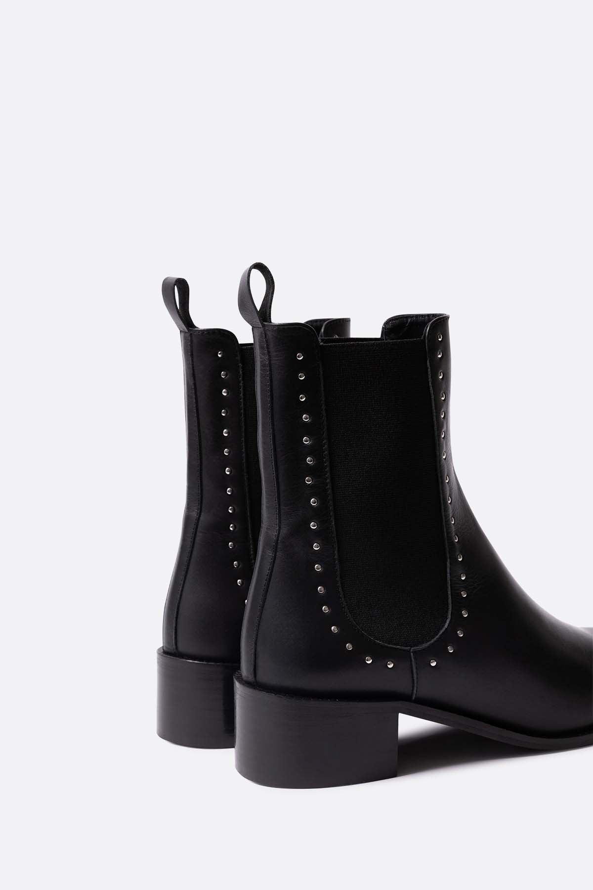Botin plano de piel negra con tachuelas