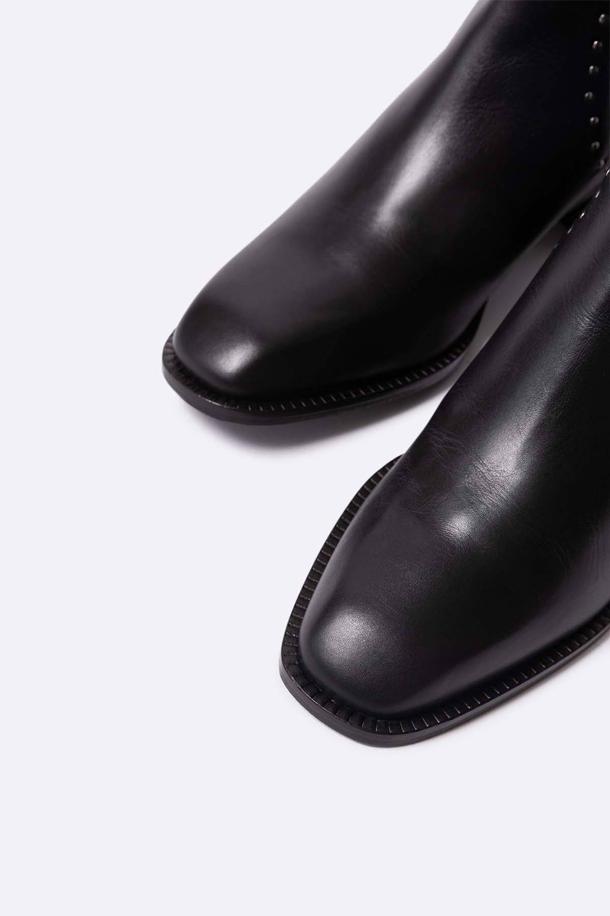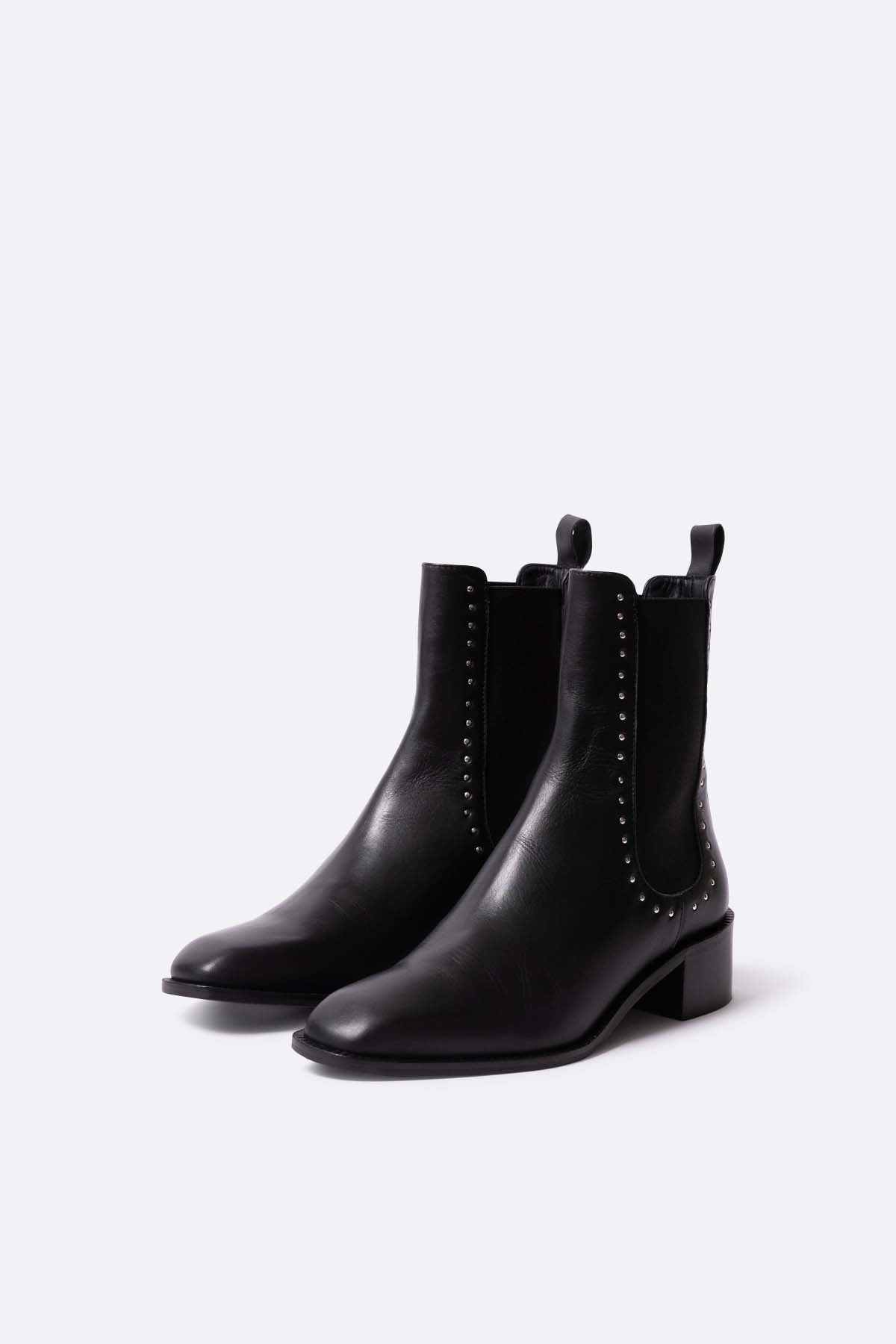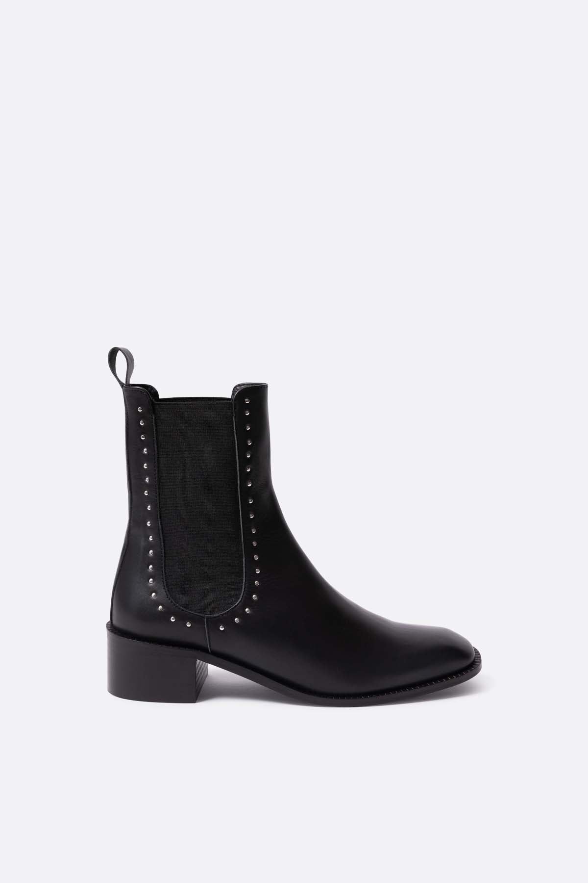 Botin plano de piel negra con tachuelas