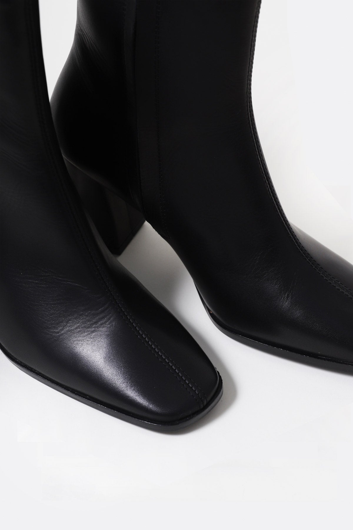 Los botines Lola destacan por su versatilidad y durabilidad. Son elaborados localmente con materiales de primera calidad y tienen un diseño atemporal y minimalista. Botines de media caña estrecha, con costura frontal al tono y cremallera lateral con solapas que la cubren. Puntera cuadrada y tacón en bloque de 8 cm ligeramente acampado y con forma redondeada en la parte trasera. Plantilla cloud acolchada para la máxima comodidad.