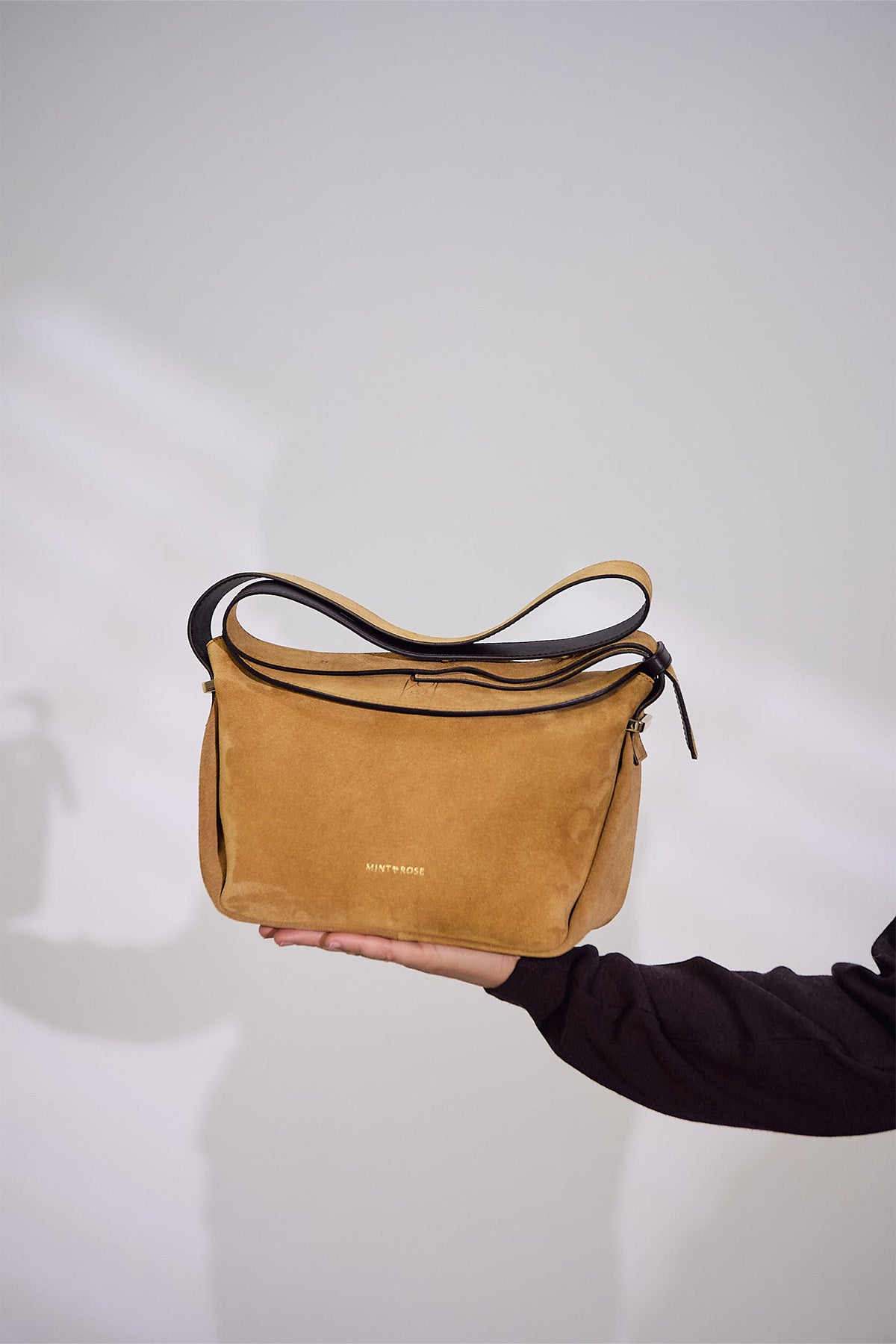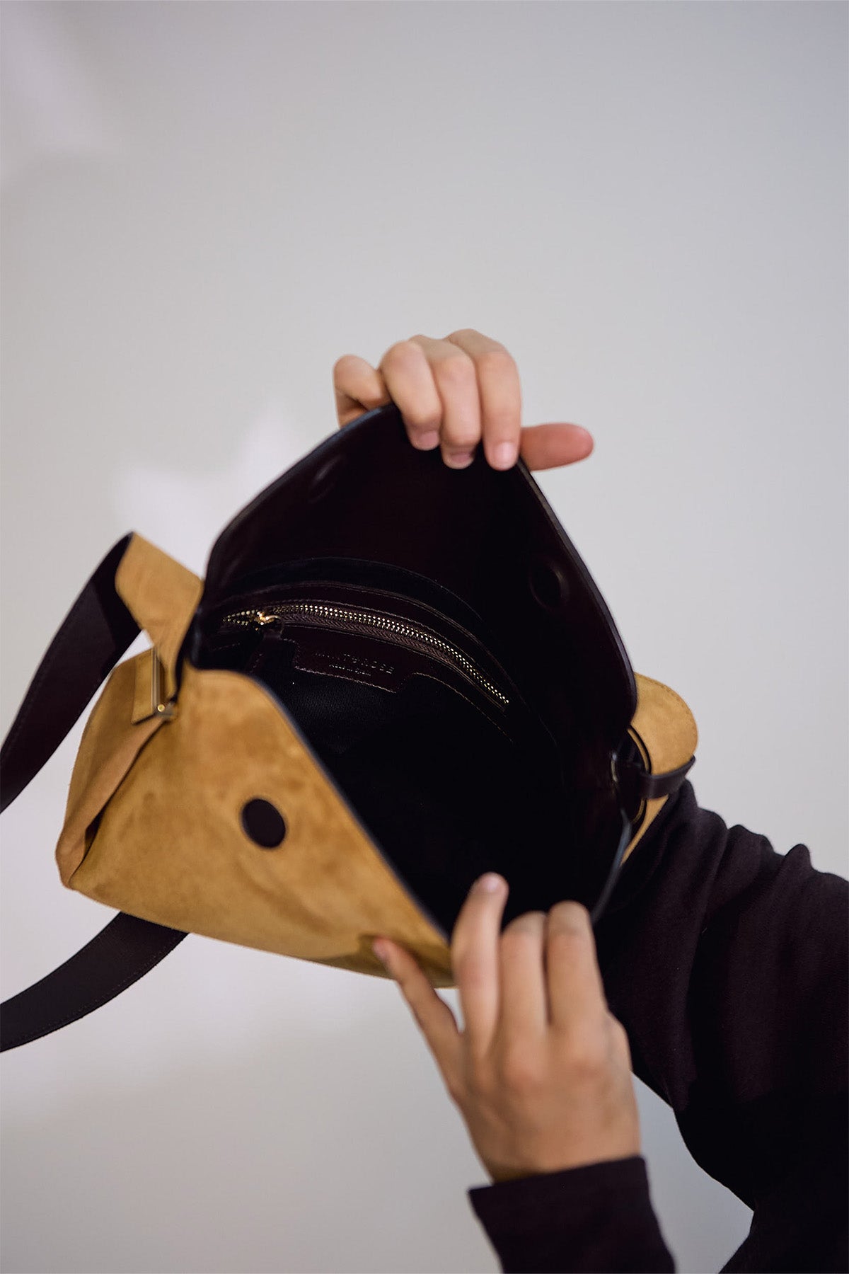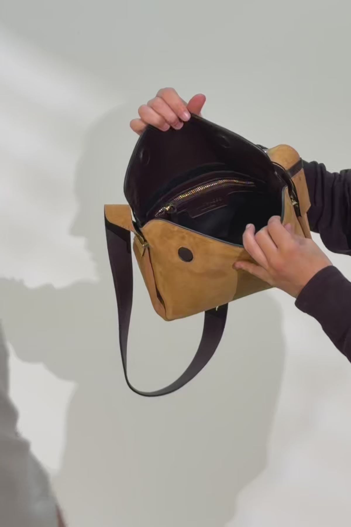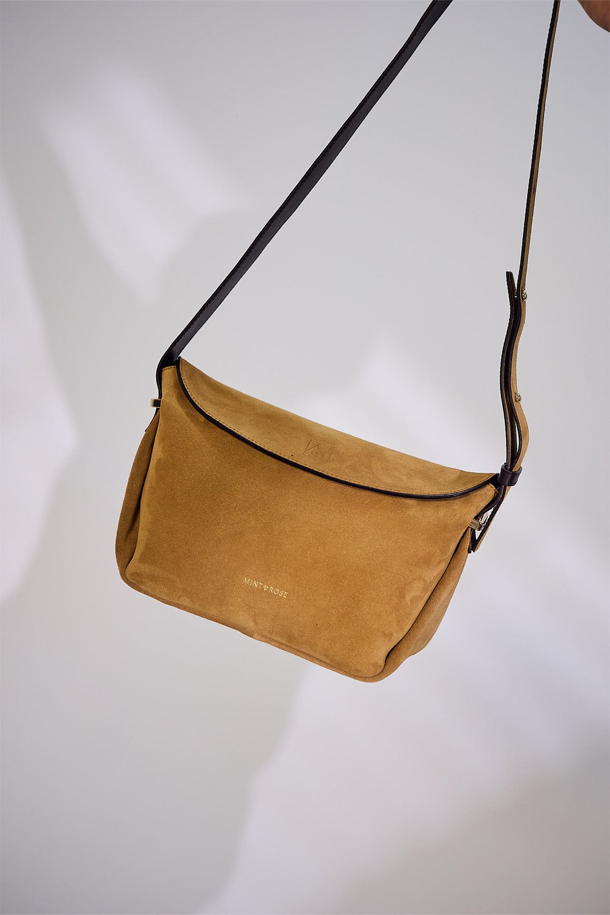 Bolso trapecio mediano de serraje camel