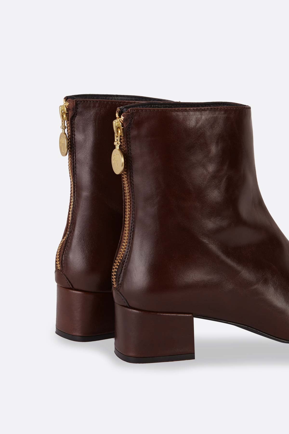 Los botines Sol son una pieza esencial con diseño versátil y atemporal, elaboradas localmente con materiales de alta calidad que prometen perdurar en el tiempo. Su diseño es un clásico pero con multitud de pequeños detalles que los convierten en el botín perfecto. Puntera sutilmente cuadrada, caña que se afina a la altura del tobillo, cremallera dorada con tirador de diseño en la parte trasera, y tacón de 4,5 cm en bloque y forma de U. Plantilla cloud acolchada para la máxima comodidad. Altura de caña: 15 cm. Anchura de caña: 5 cm.