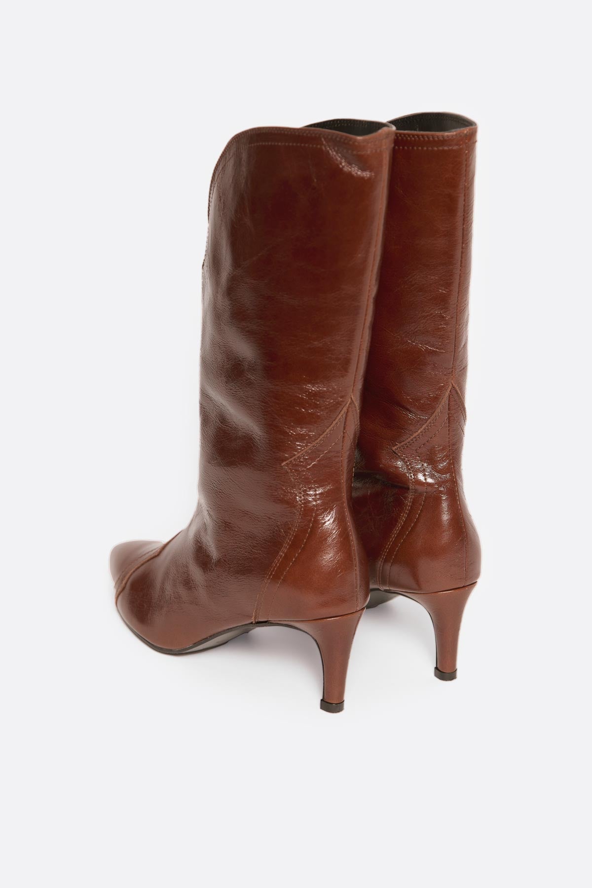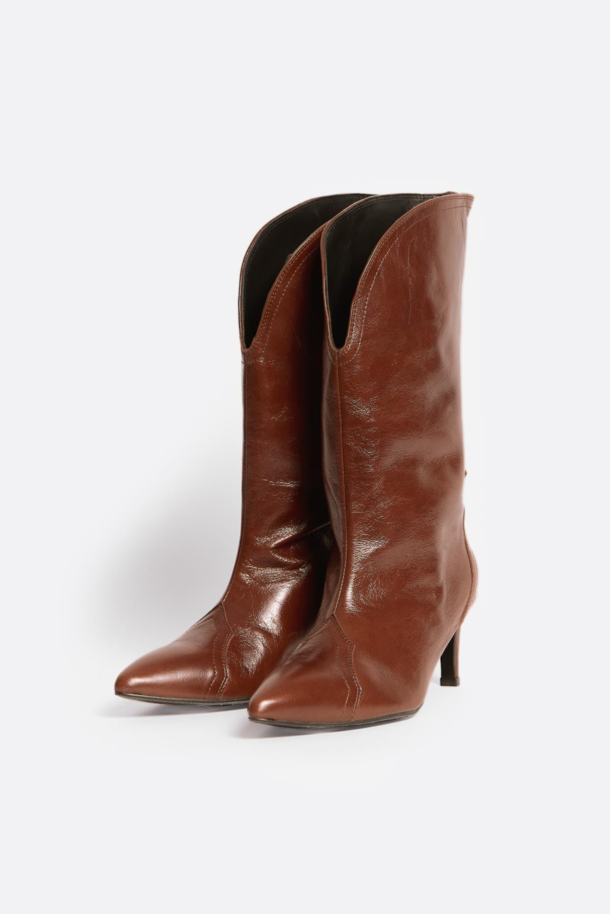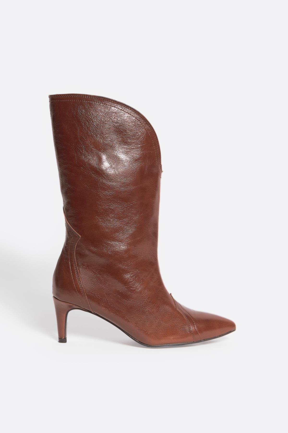 Bota alta de piel marrón con tacón medio