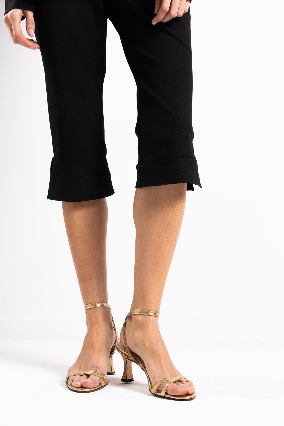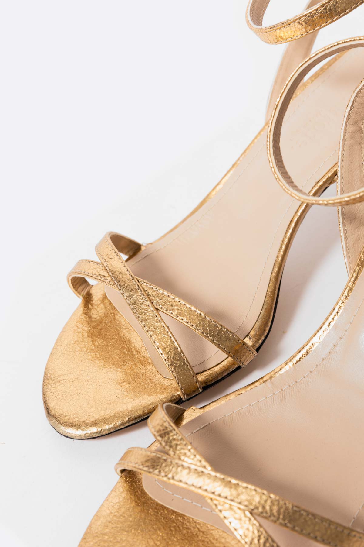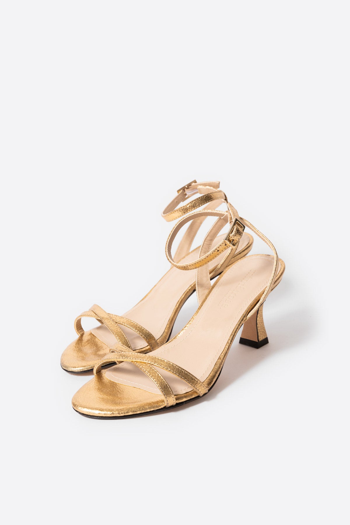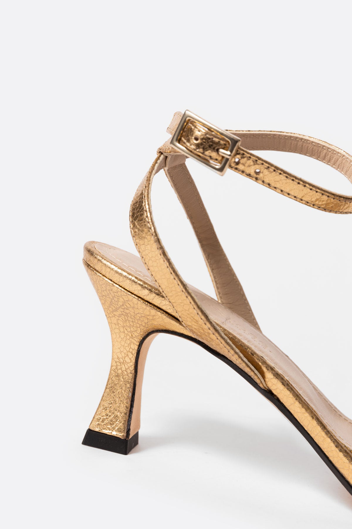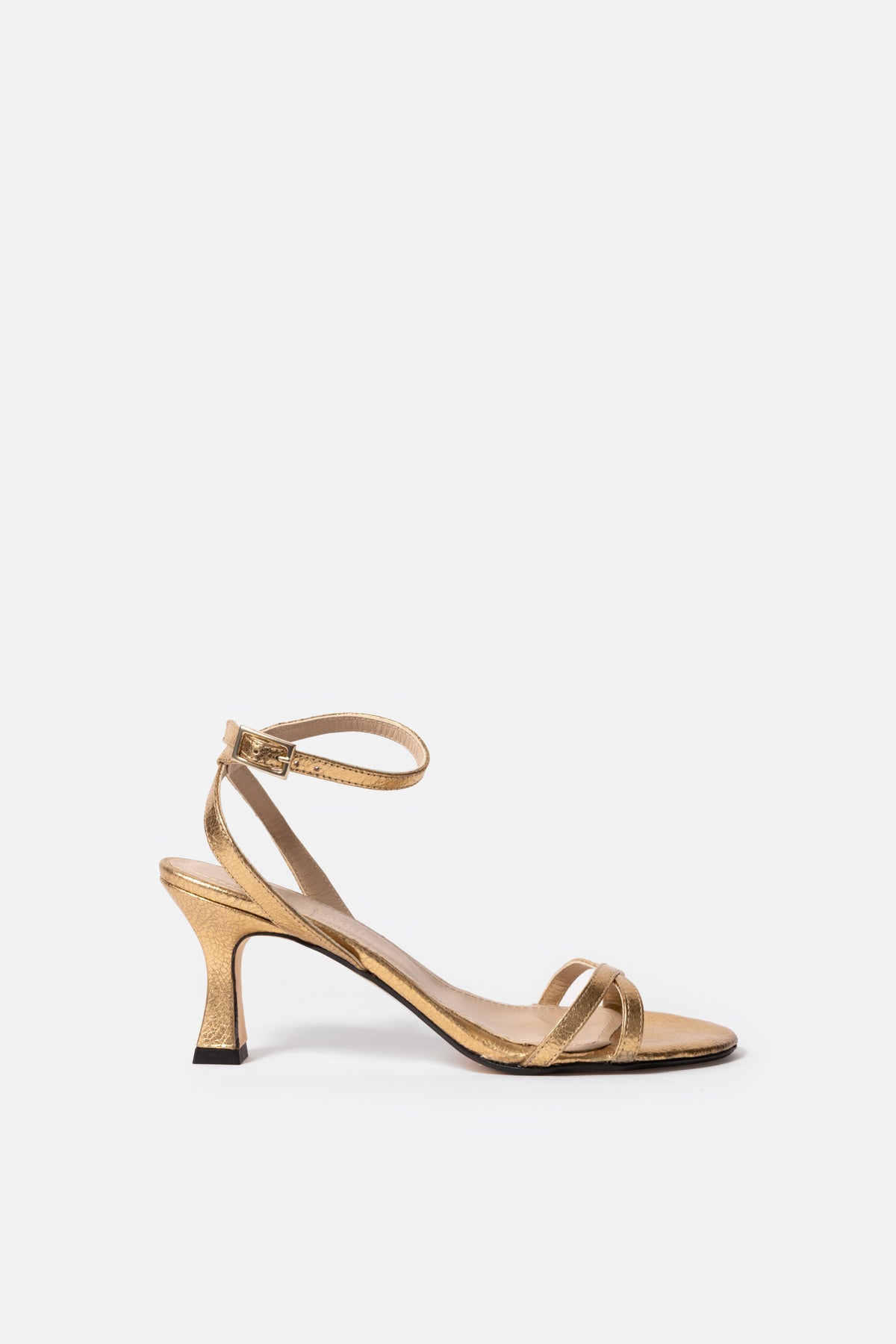 Sandalia de piel dorada con tacón medio