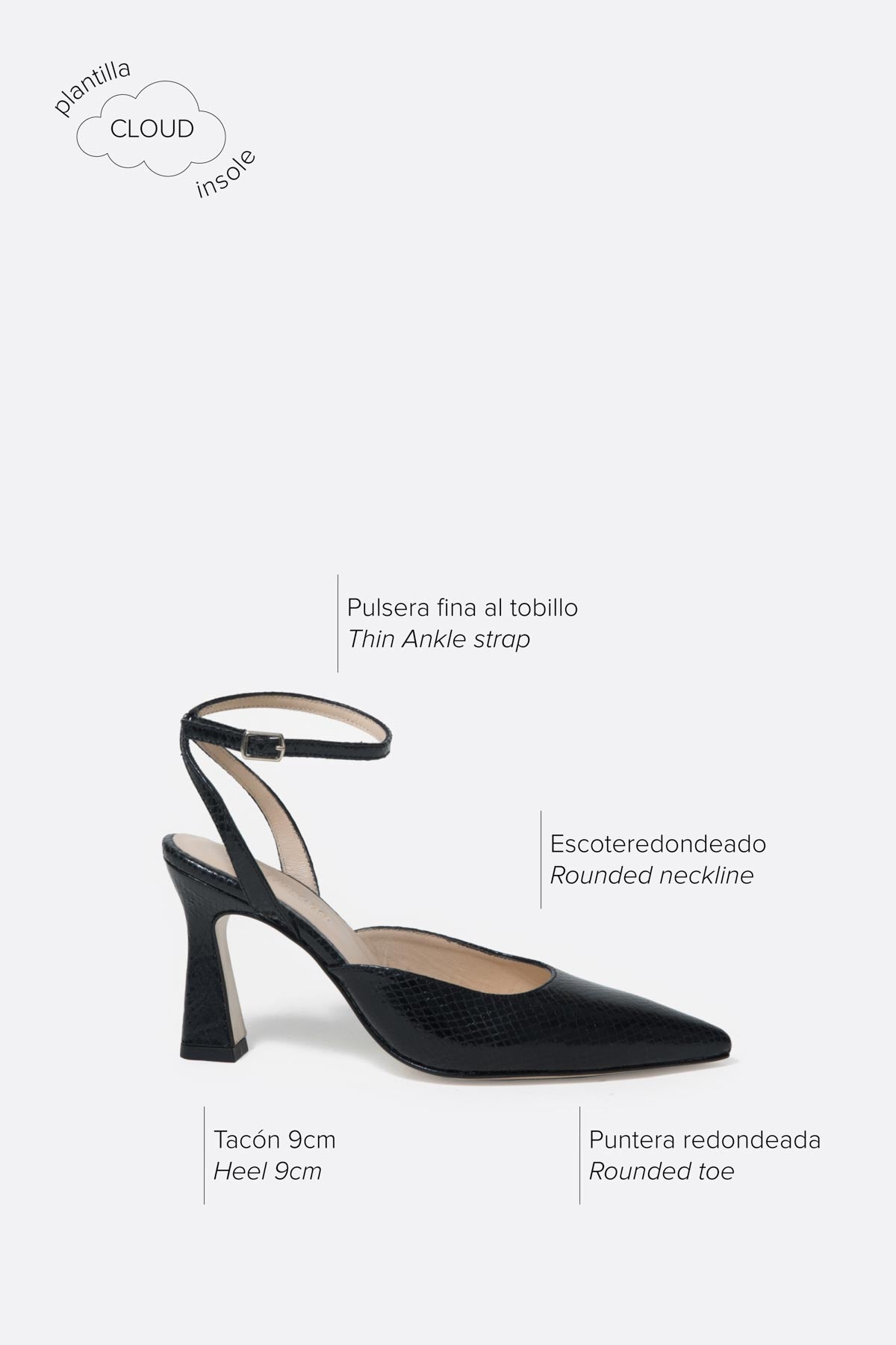 Su diseño e identidad atemporal, materiales de primera calidad y proceso de fabricación cuidado, convierten a Vivienne en una inversión para toda la vida. Vivienne es un salón renovado con puntera afilada pero ligeramente redondeada. Proporciona el toque final perfecto para tus conjuntos de noche. Tiene una tira en el talón y una pulsera fina en el tobillo para conseguir un perfecto agarre, plantilla acolchada Cloud y tacón de 9 cm.