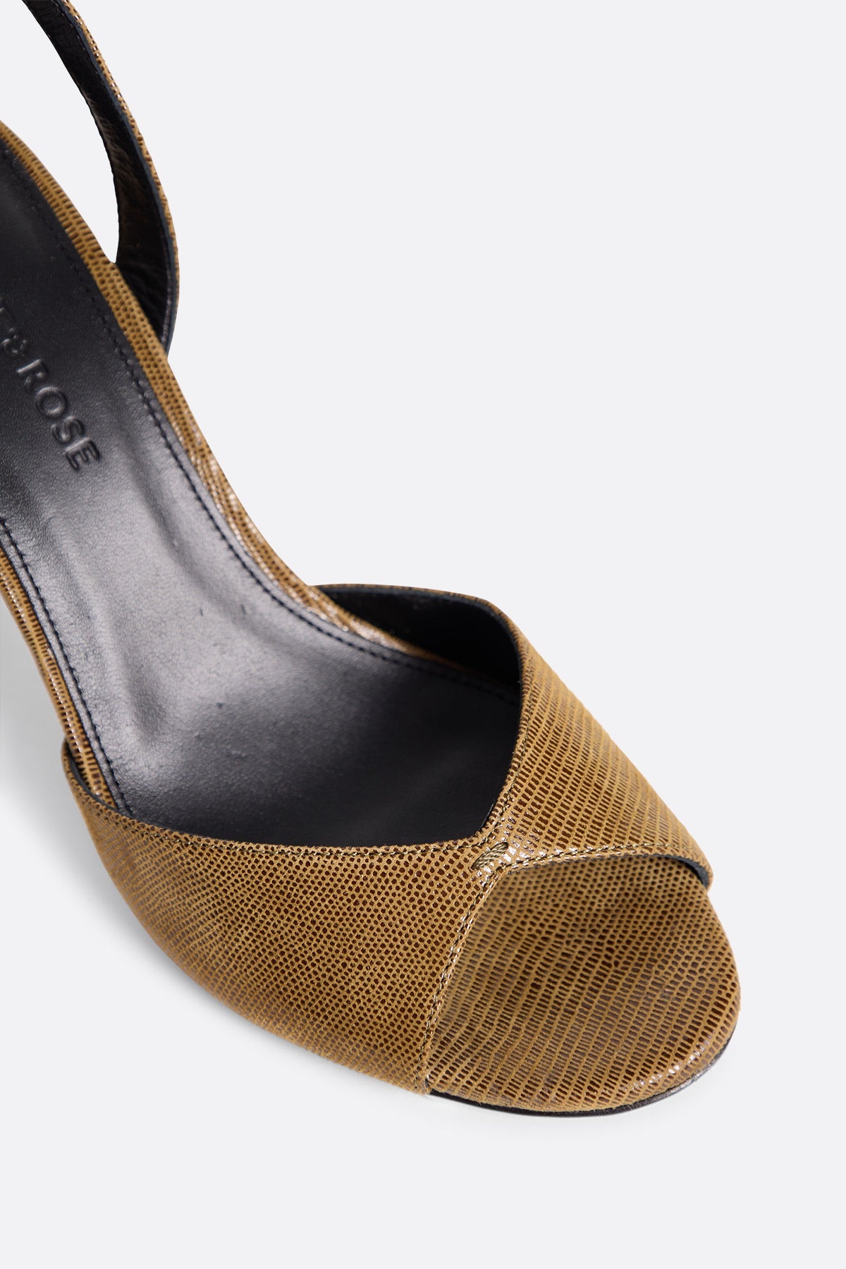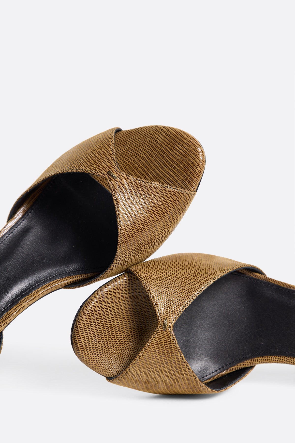 Lo que más nos gusta: Su piel en base de ante con relieve de escamas y su color verde-amarillo.