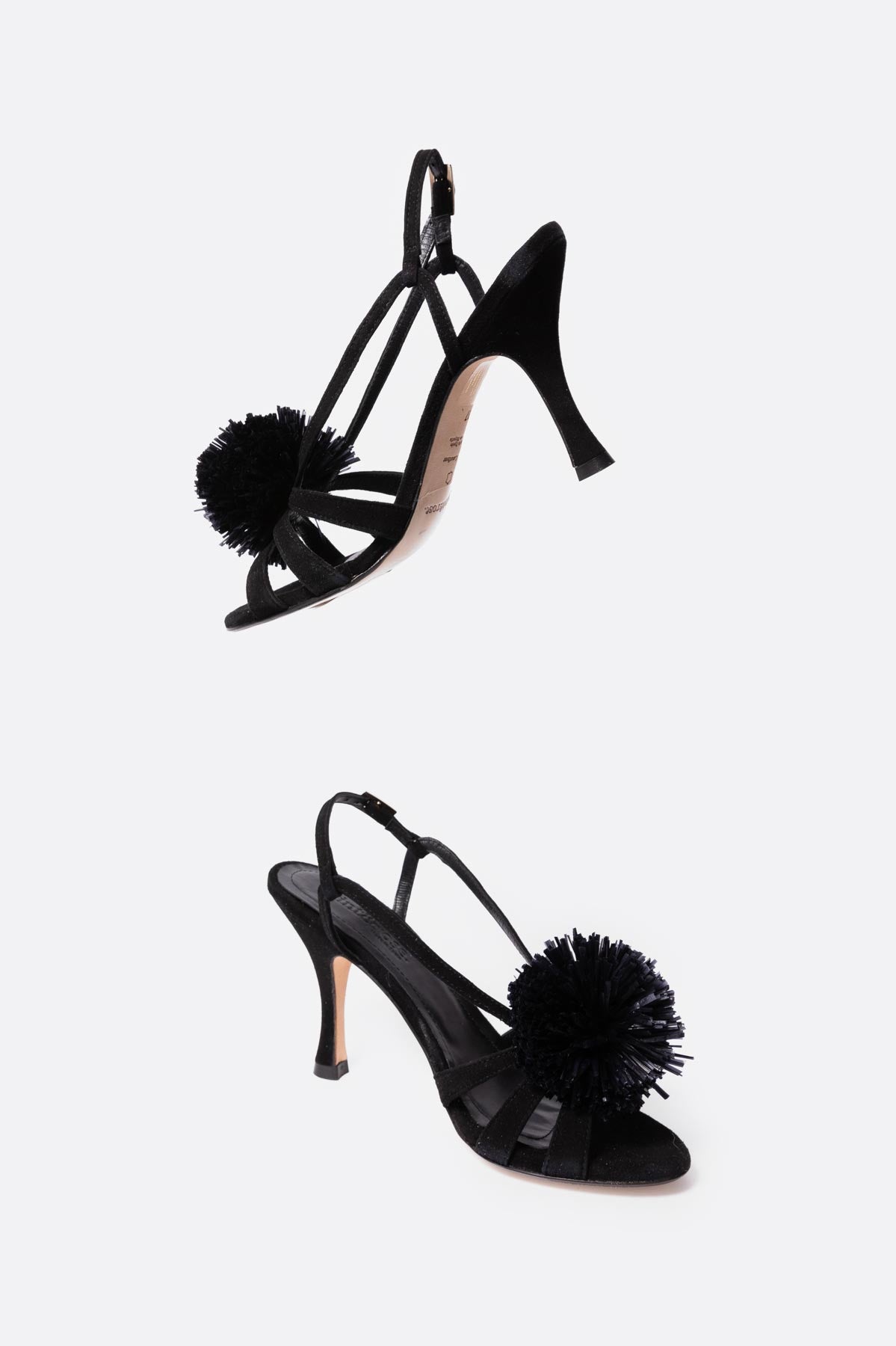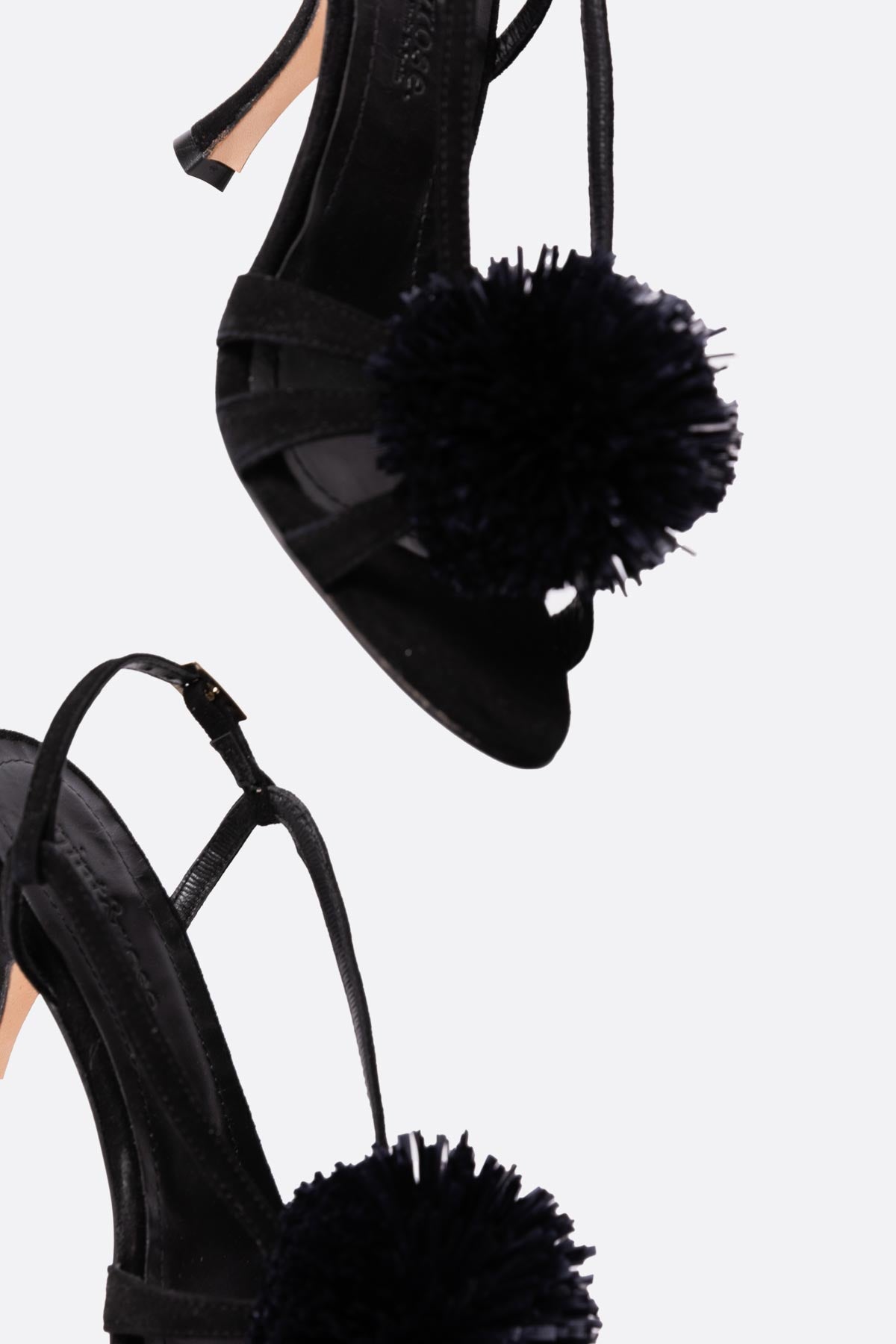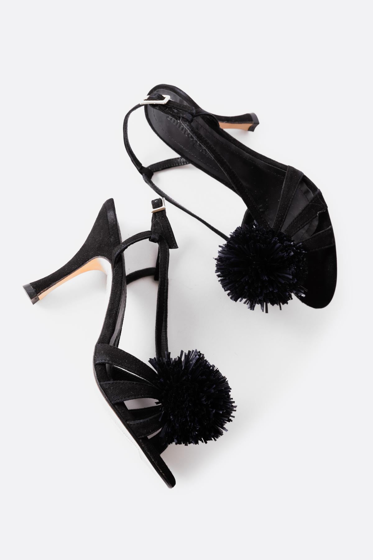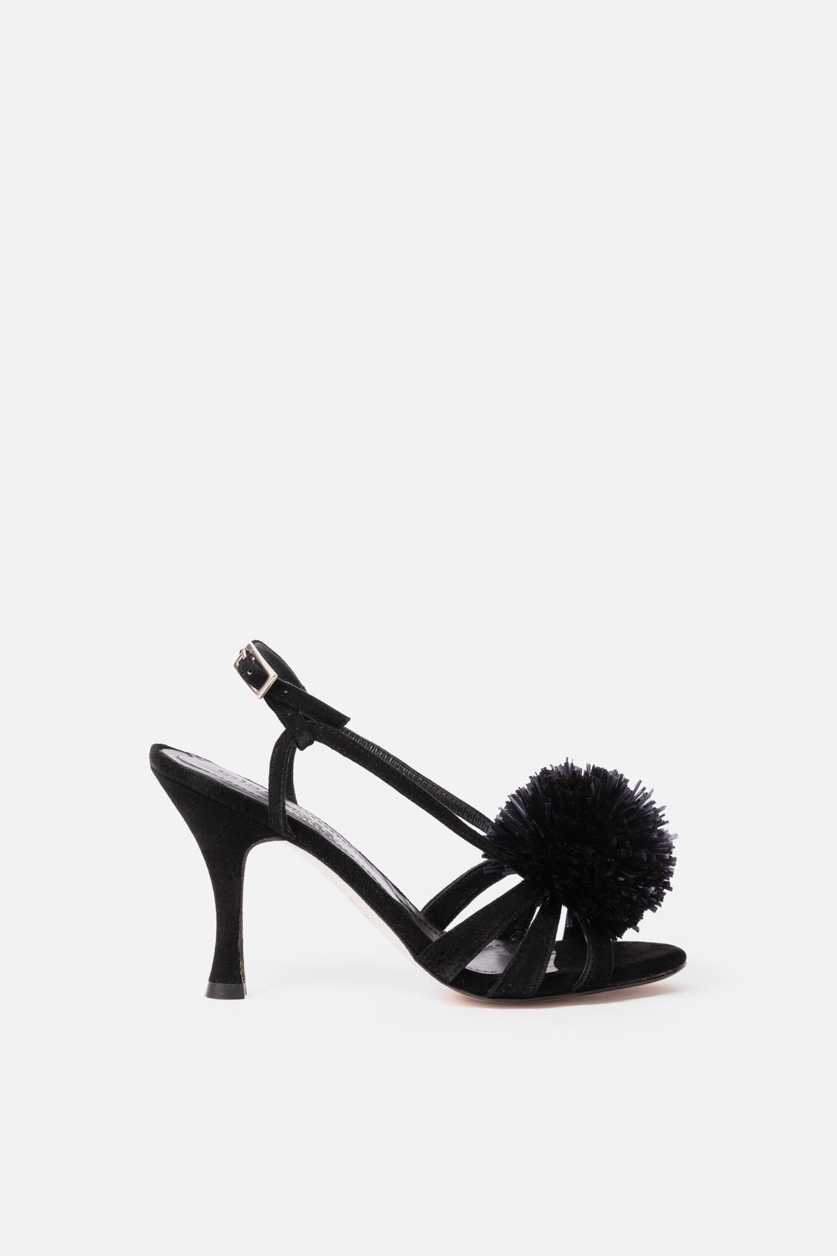 Sandalia alta con pompon en piel negro
