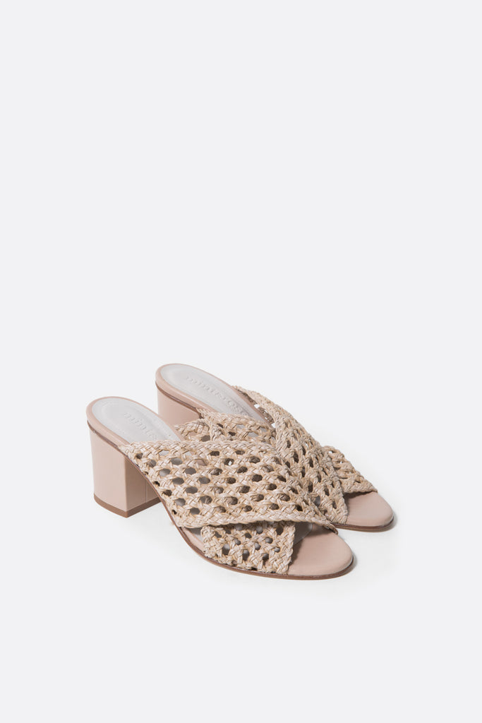 Tiene dos tiras trenzadas que se ajustan perfectamente al pie, además cuenta con forro de piel cosido y vuelto que las hacen aún más confortables e ideales para el verano. Tacón medio con una altura de 8 cm.