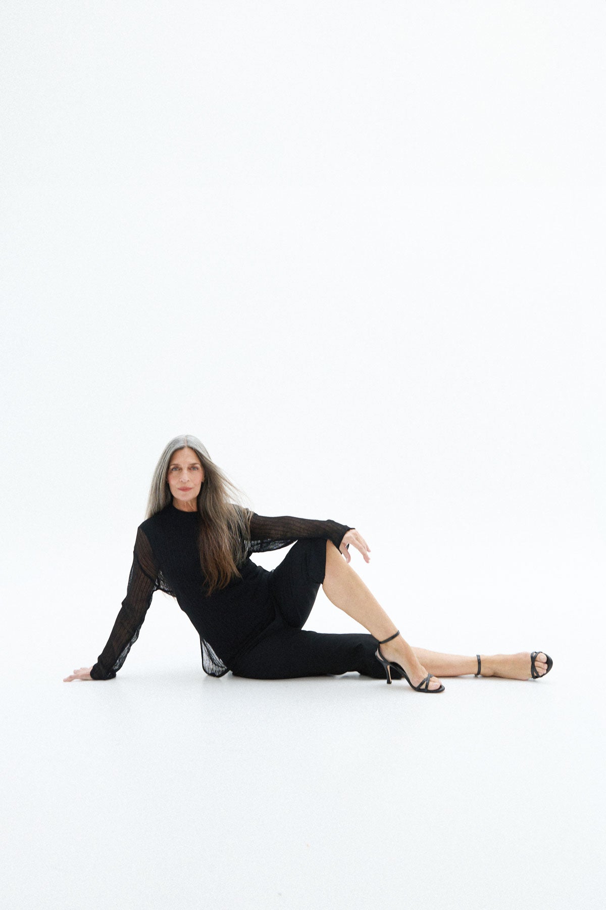Sandalia alta en piel negro