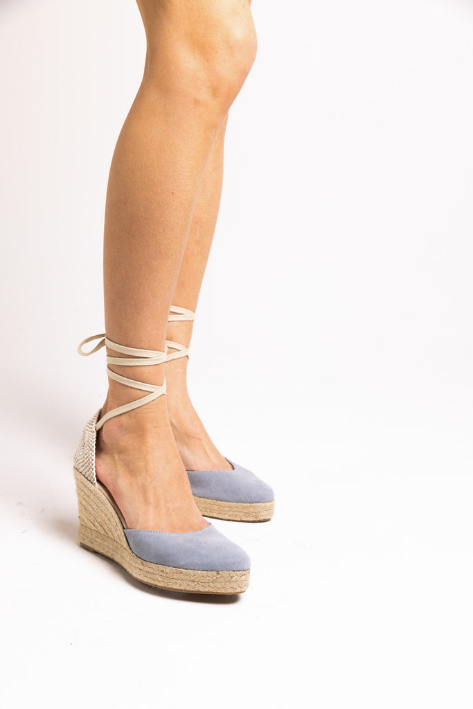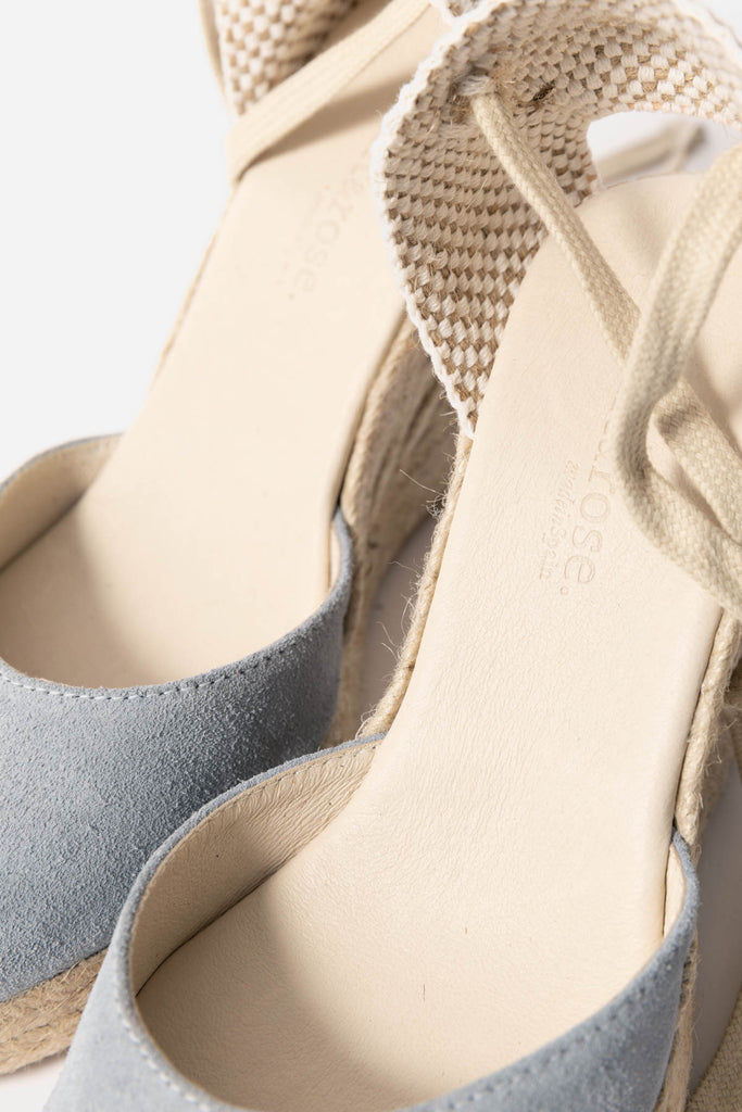 Alpargata cuña alta en piel azul celeste - 9 cm