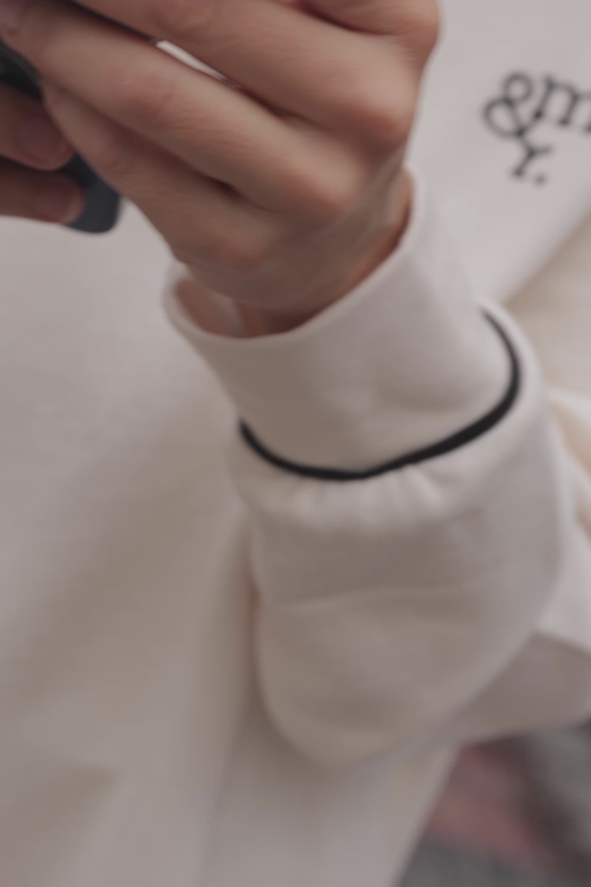 Sudadera cruda con ribete y letras en negro