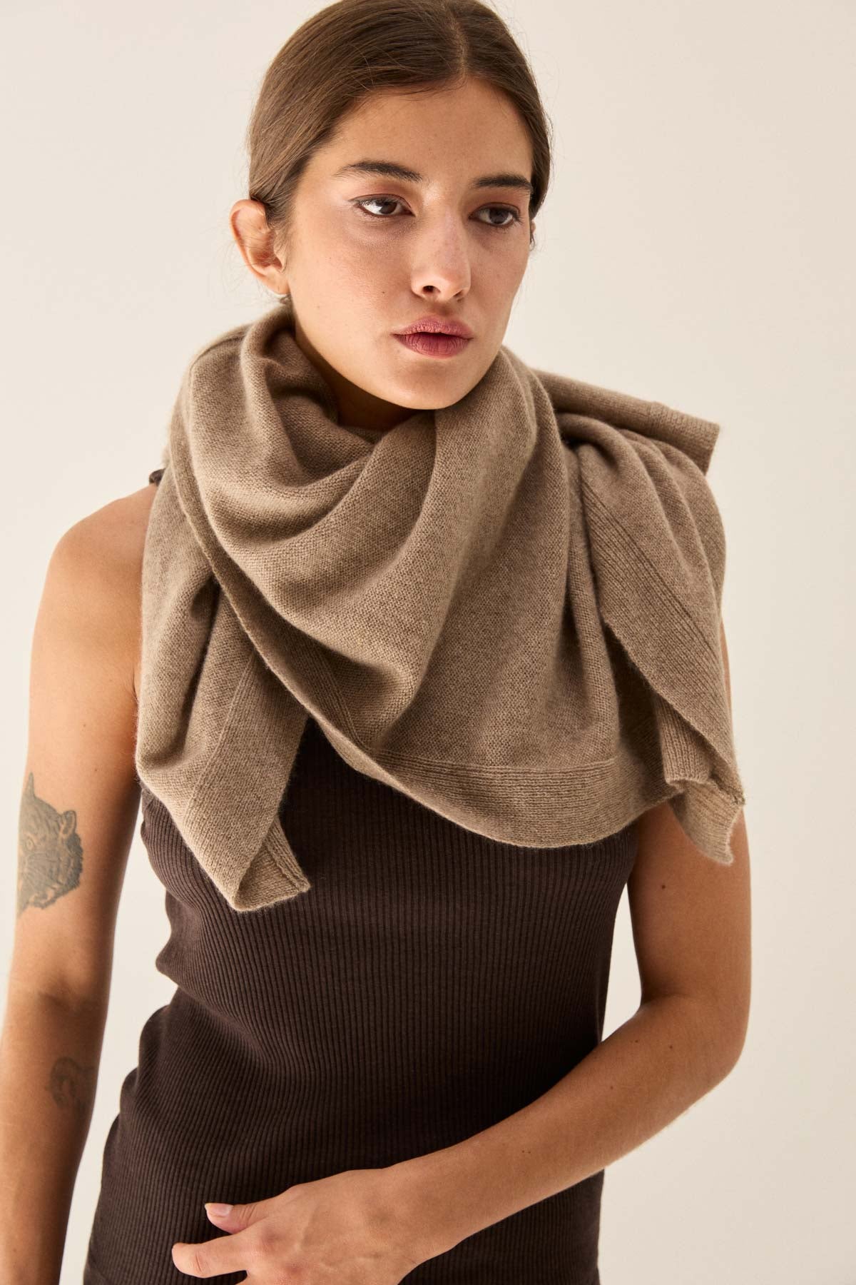 Stone scarves are made from the softest and highest quality cashmere. Made in Mongolia, they provide a pleasant sensation of warmth and incomparable softness. Rectangular shape with hem on all sides. Dimensions: 140 cm long and 75 cm wide (rectangular).