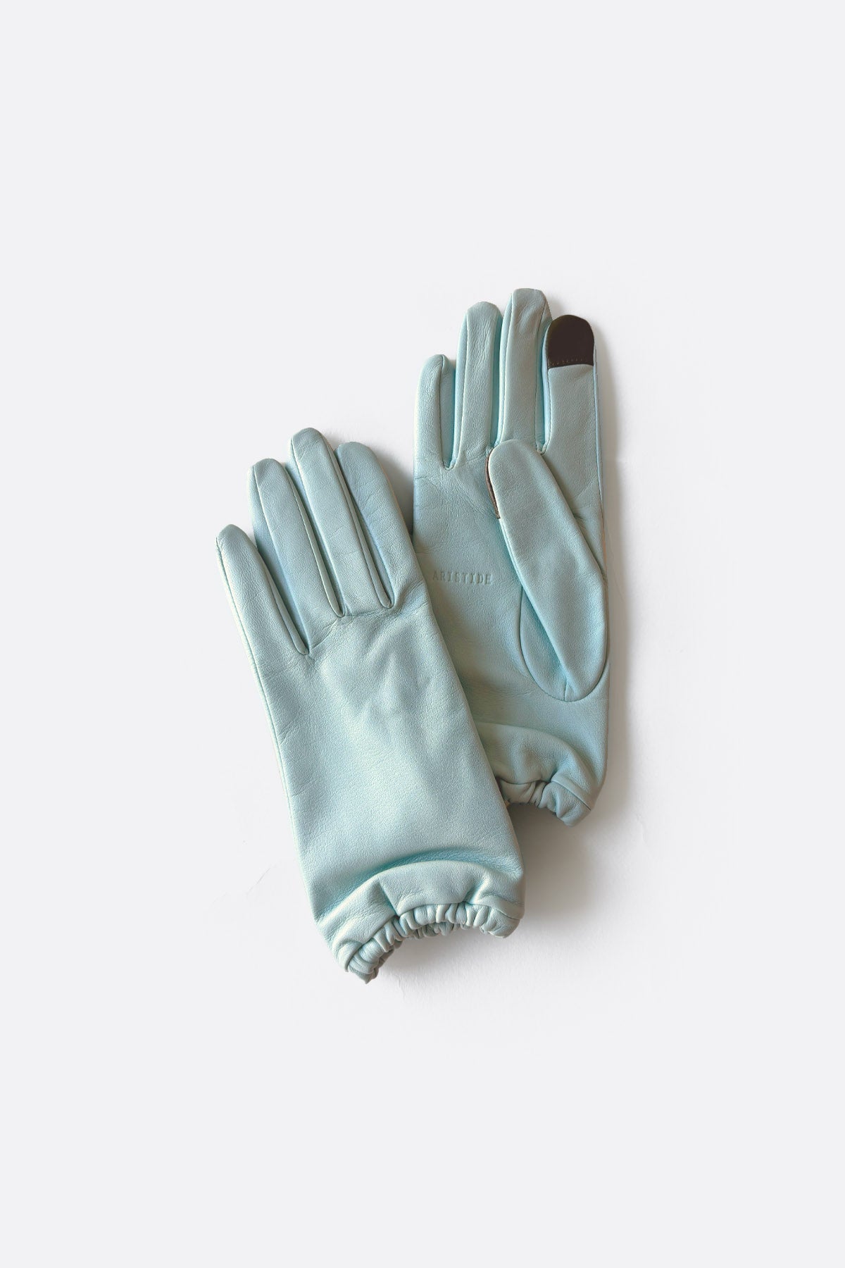 Wrist-length gloves with elastic to keep out the cold. The shape of the glove with elastic adds a modern touch while maintaining its feminine feel.
