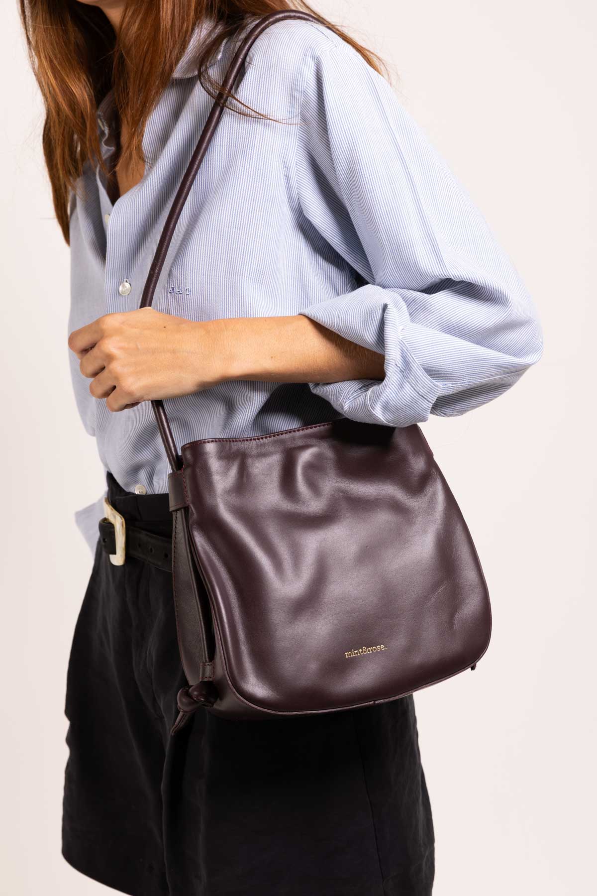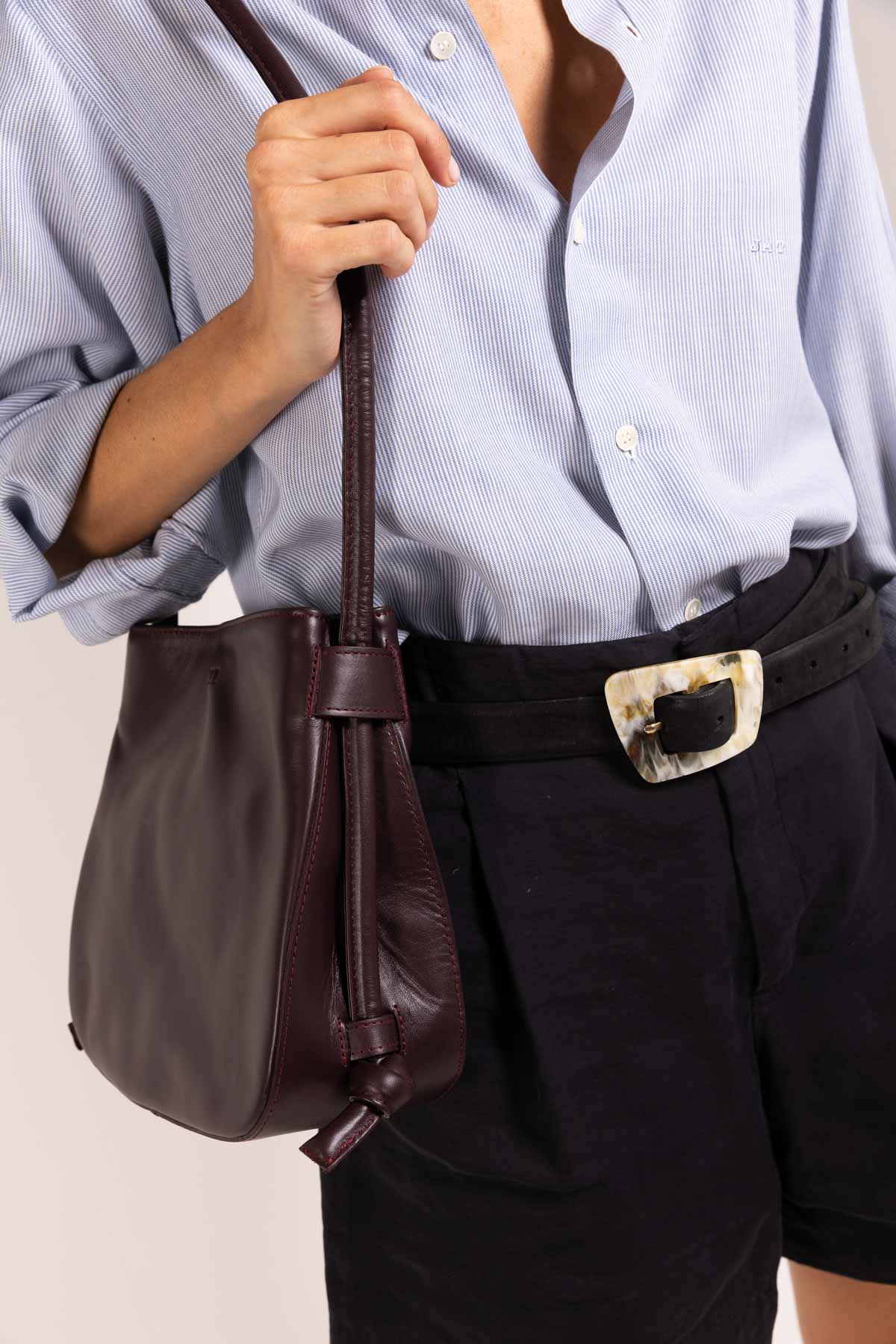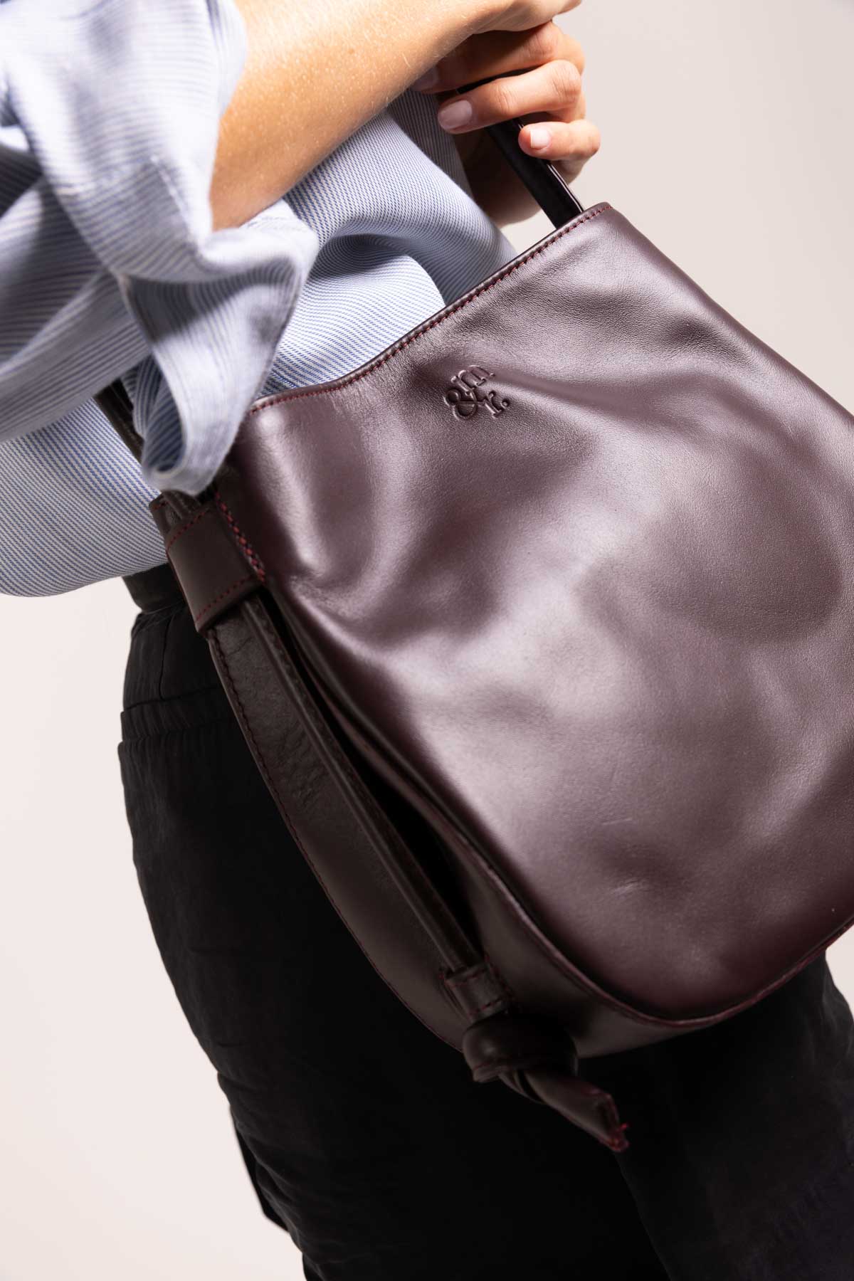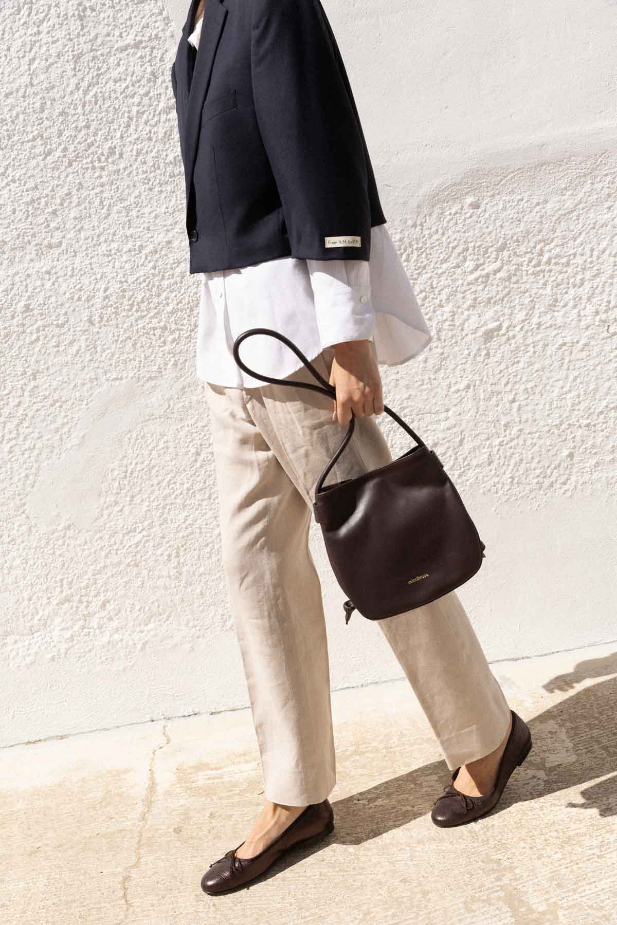 Handcrafted in Spain, carefully selected materials and extremely soft leather are Lia's calling card. Multiposition shoulder bag with clasp closure with magnet, with rounded shape at the base and straight at the top. Super resistant round handle adjustable in 3 positions. Its exterior is made of leather and its interior lining is made of cotton. It has an inside pocket. Measures 24 cm x 23 cm x 10 cm.