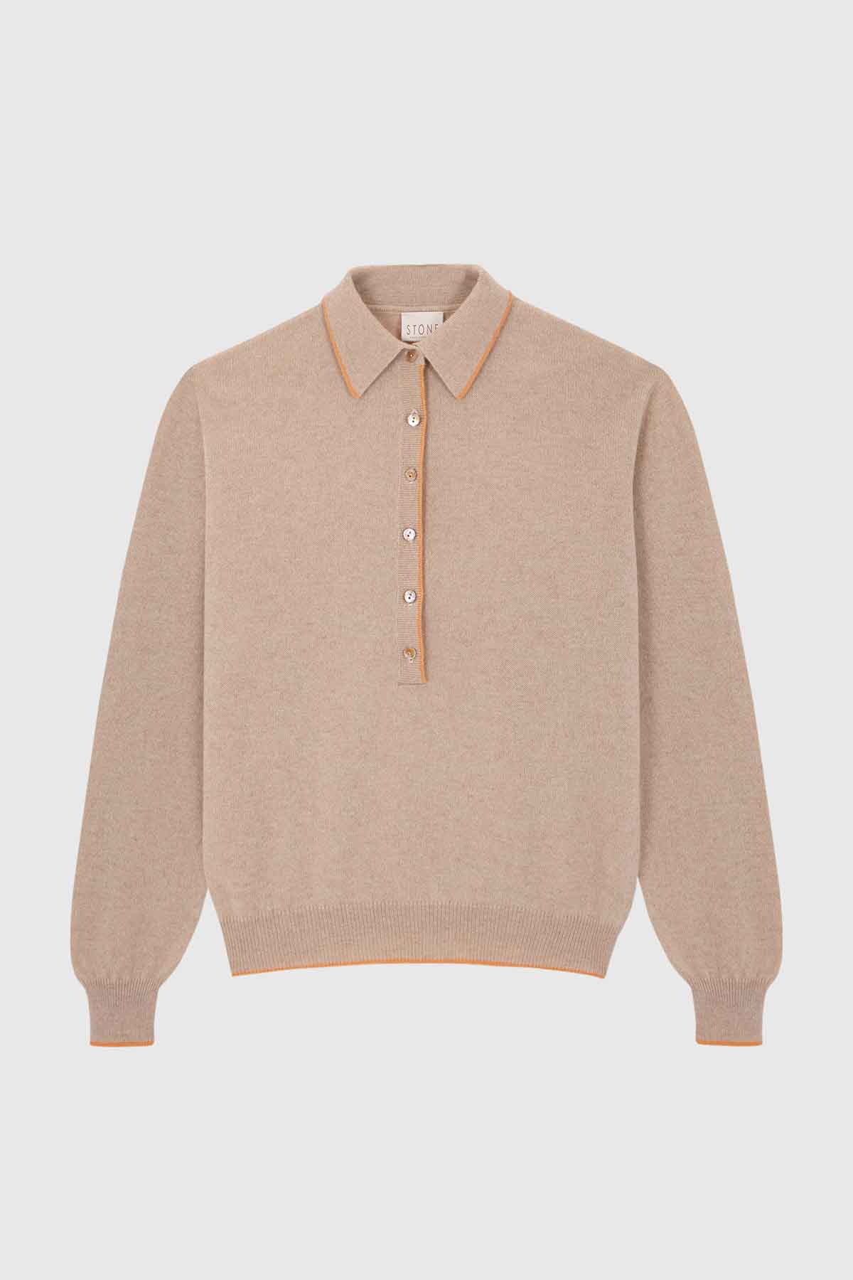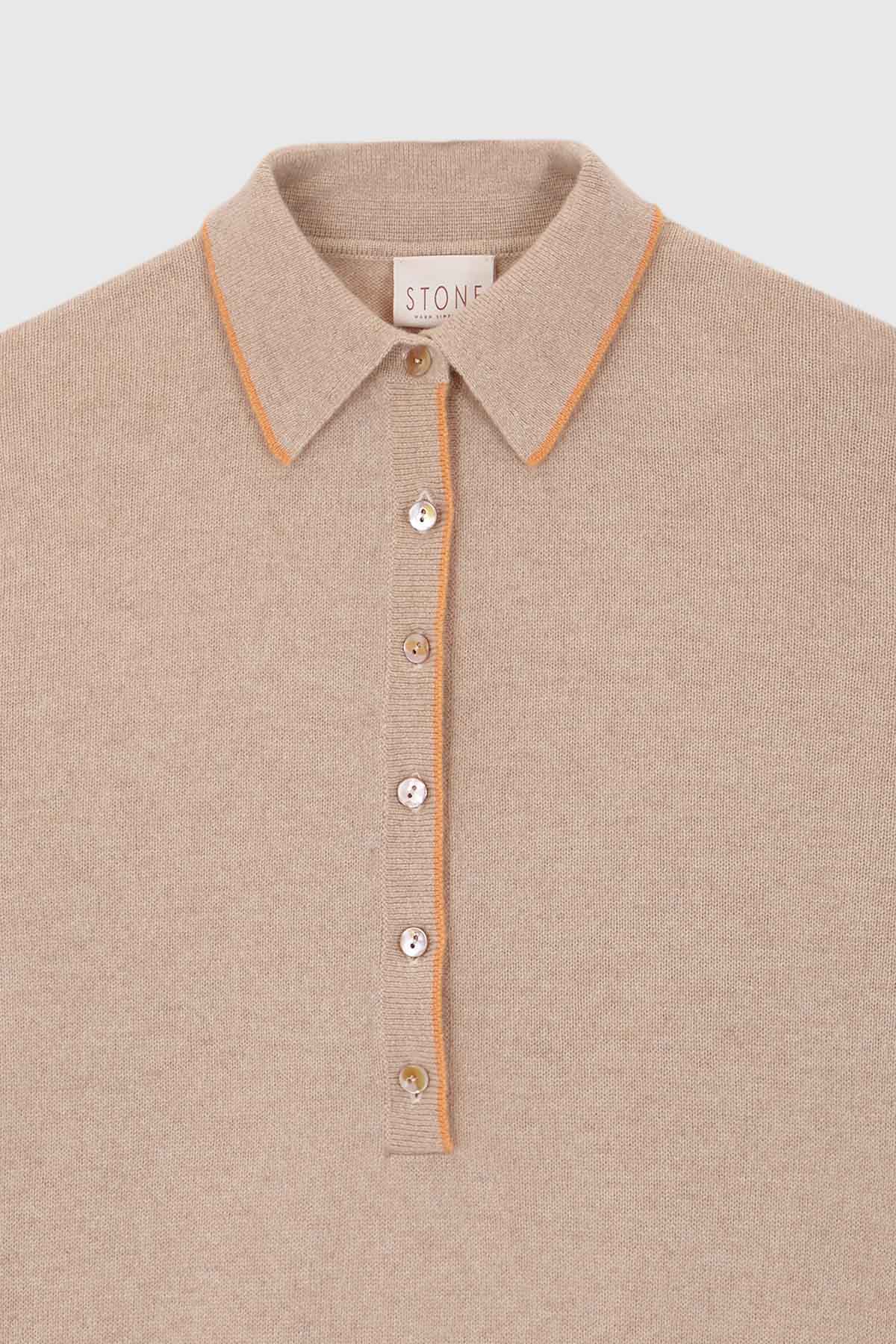 Beige and orange cashmere polo shirt