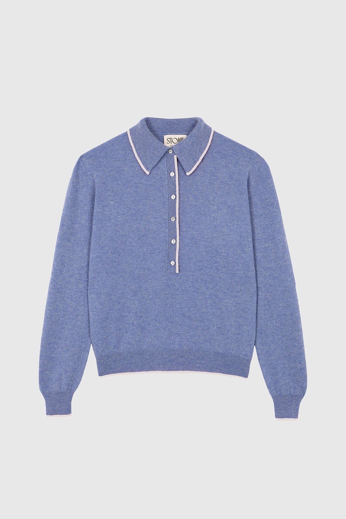 Stone garments are made from the softest and highest quality cashmere. Made in Mongolia, they provide a pleasant sensation of warmth and incomparable softness. Polo with collar and button placket at neckline. Ribbed cuffs and hem finish.