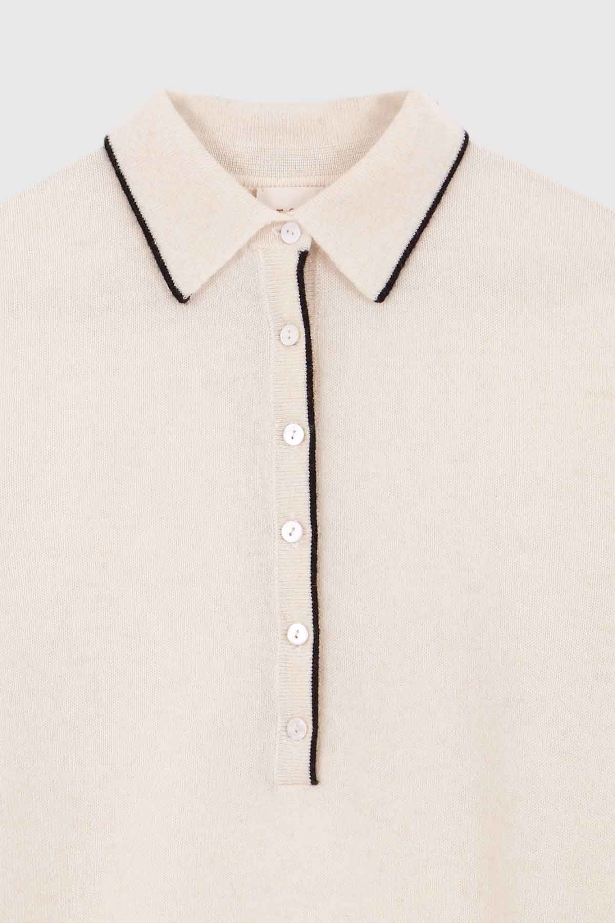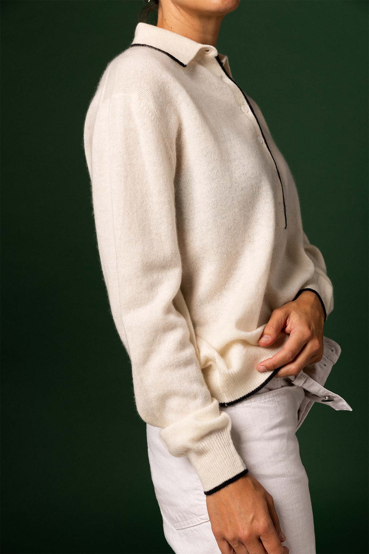 Stone garments are made from the softest and highest quality cashmere. Made in Mongolia, they provide a pleasant sensation of warmth and incomparable softness. Polo with collar and button placket at neckline. Ribbed cuffs and hem finish.