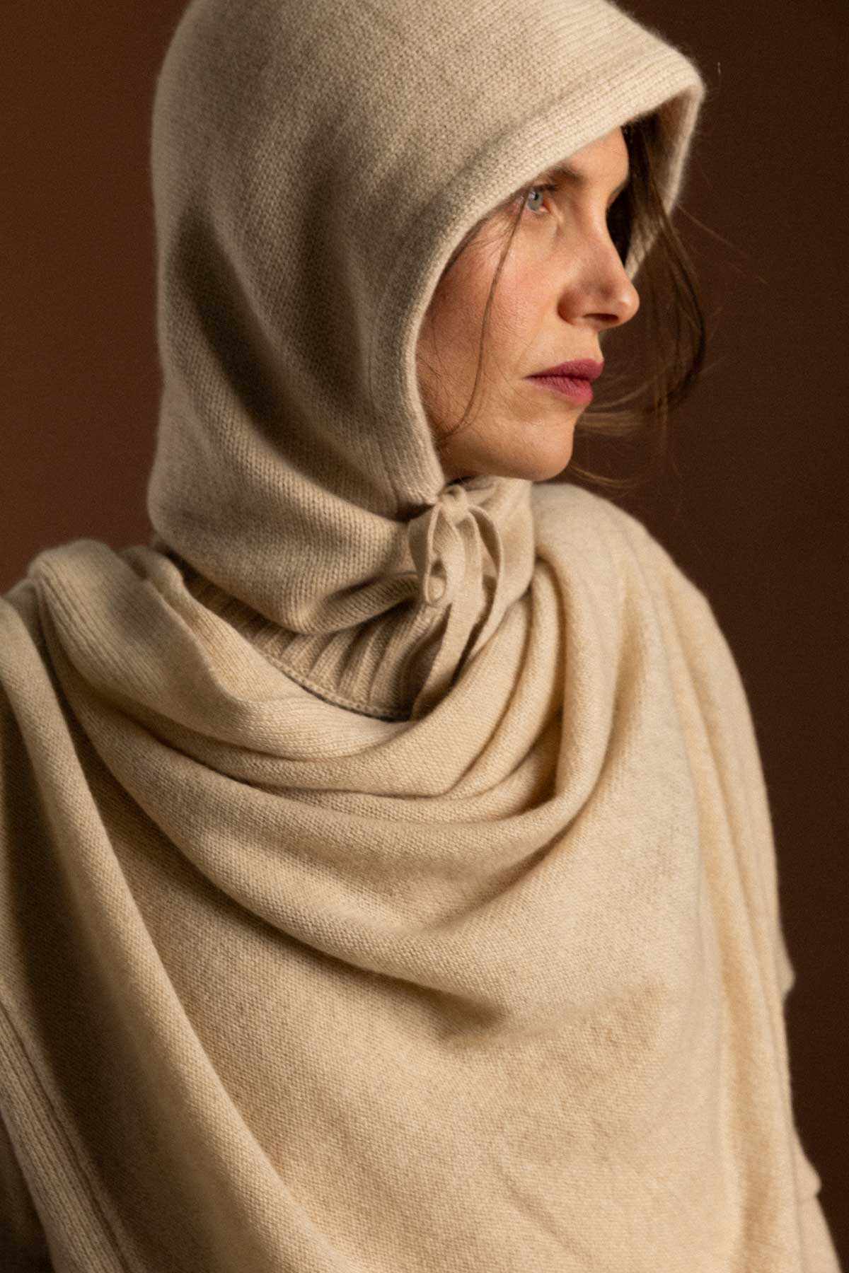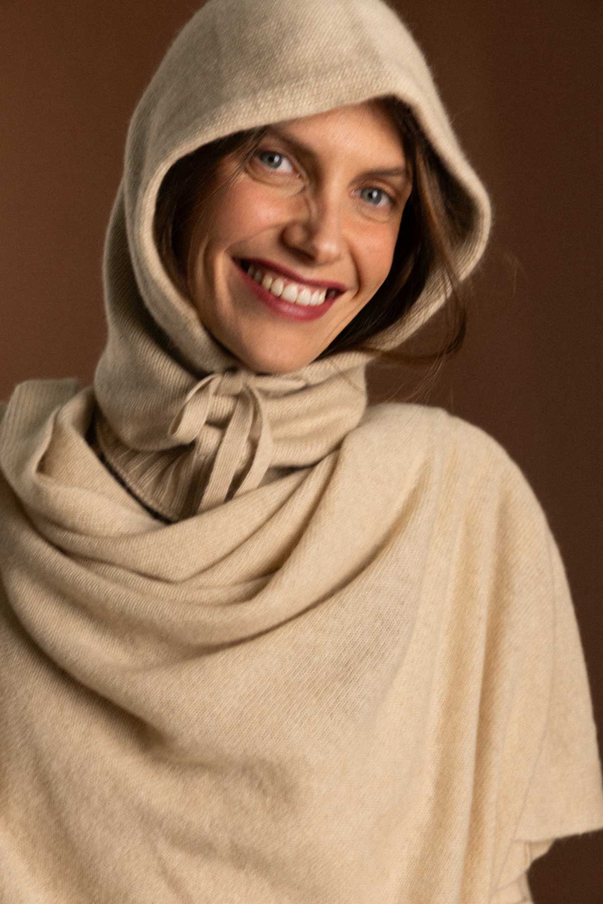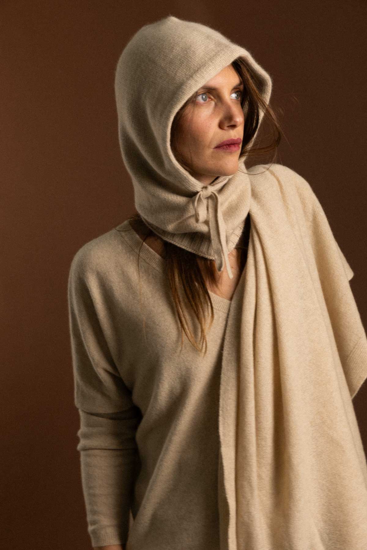 What we like the most: Feeling the softness of the cashmere on the face and its light beige colour.