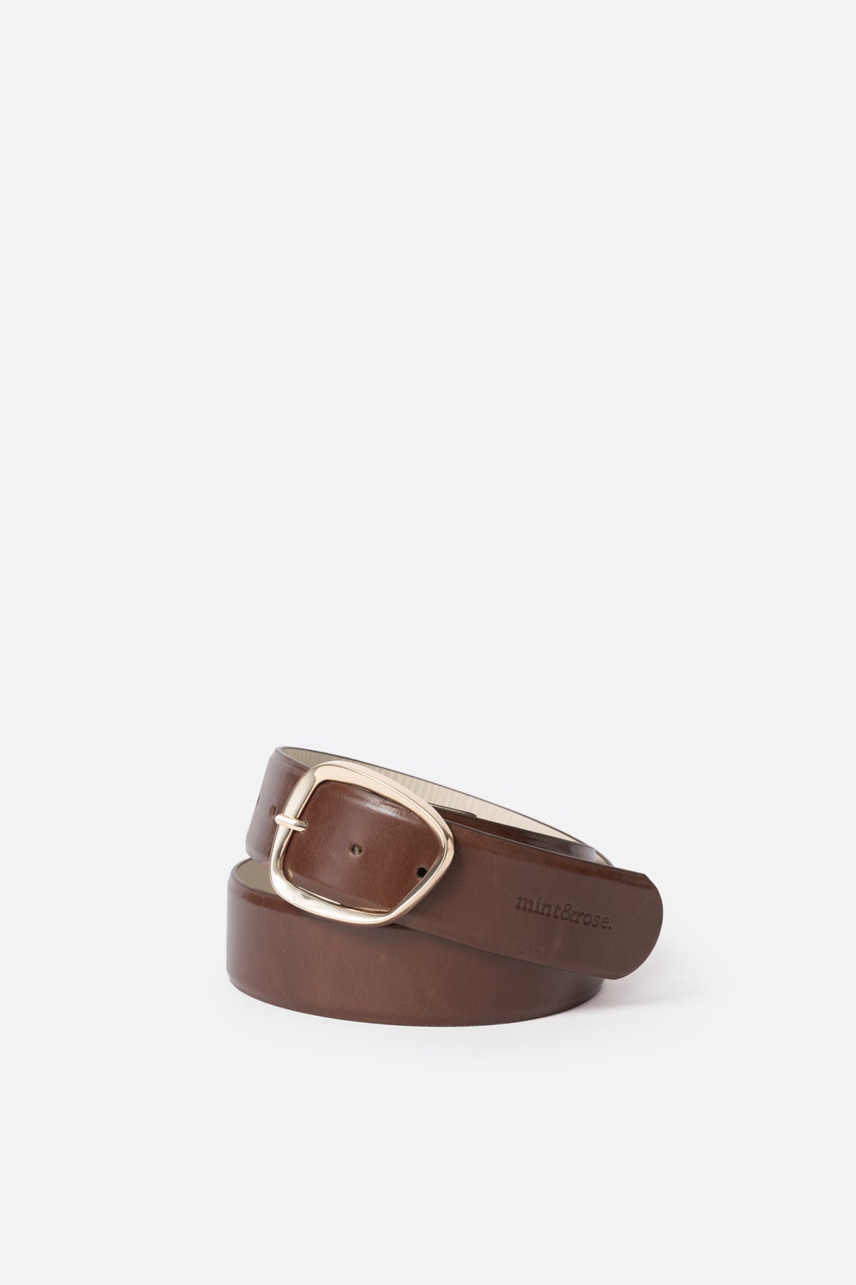 Chocolate Leather Belt with Gold Buckle