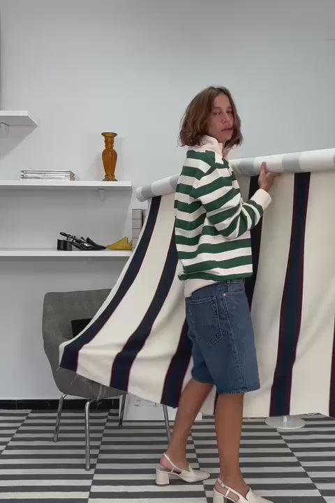 What we like the most: Its combination of colors (green-cream) and the stripes