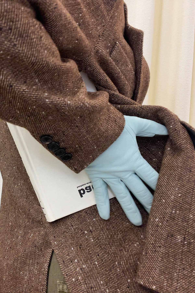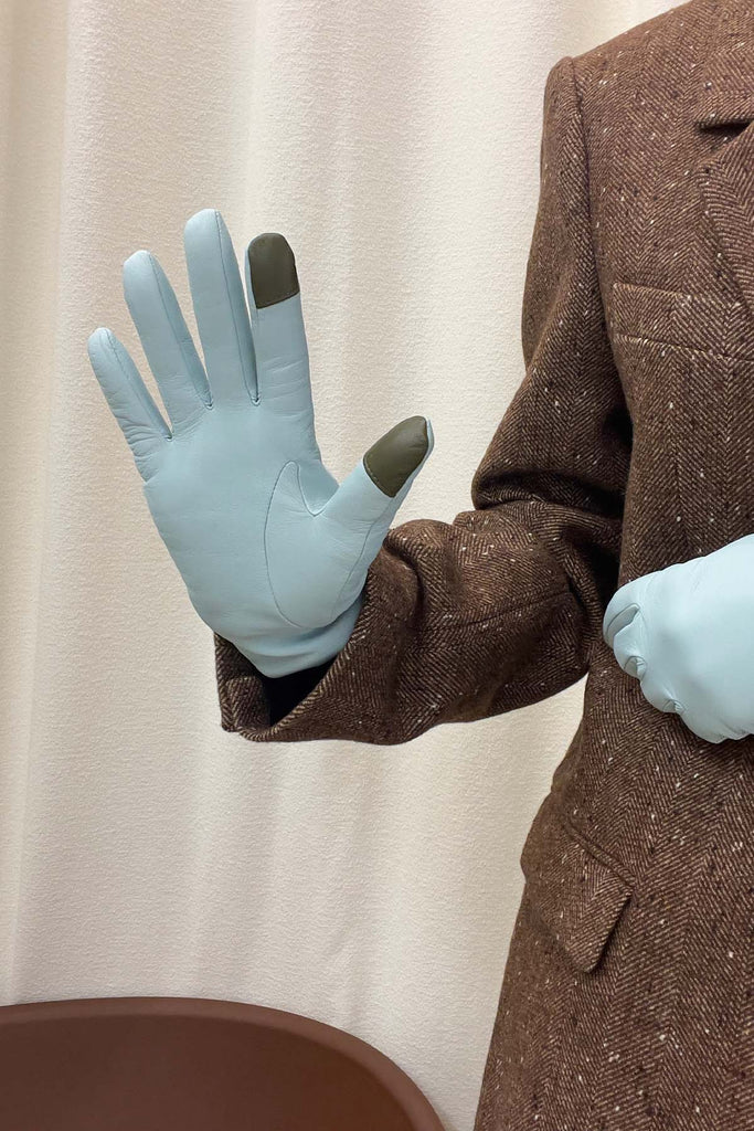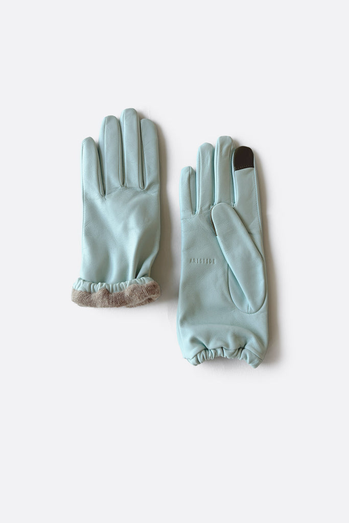 Light blue leather glove with cashmere