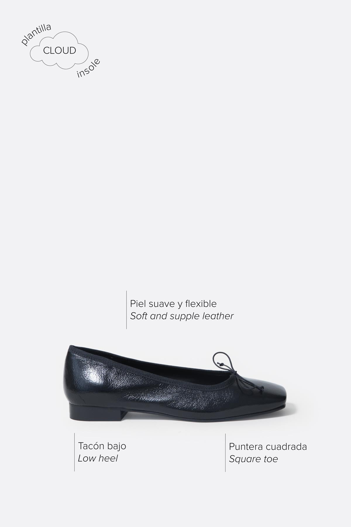 It is everything you would expect from a ballerina but with a seductive twist. Its square toe gives it part of its personality. You will fall in love with the softness of its leather and its padded insole. A basic in your closet that will become your ally in between seasons.