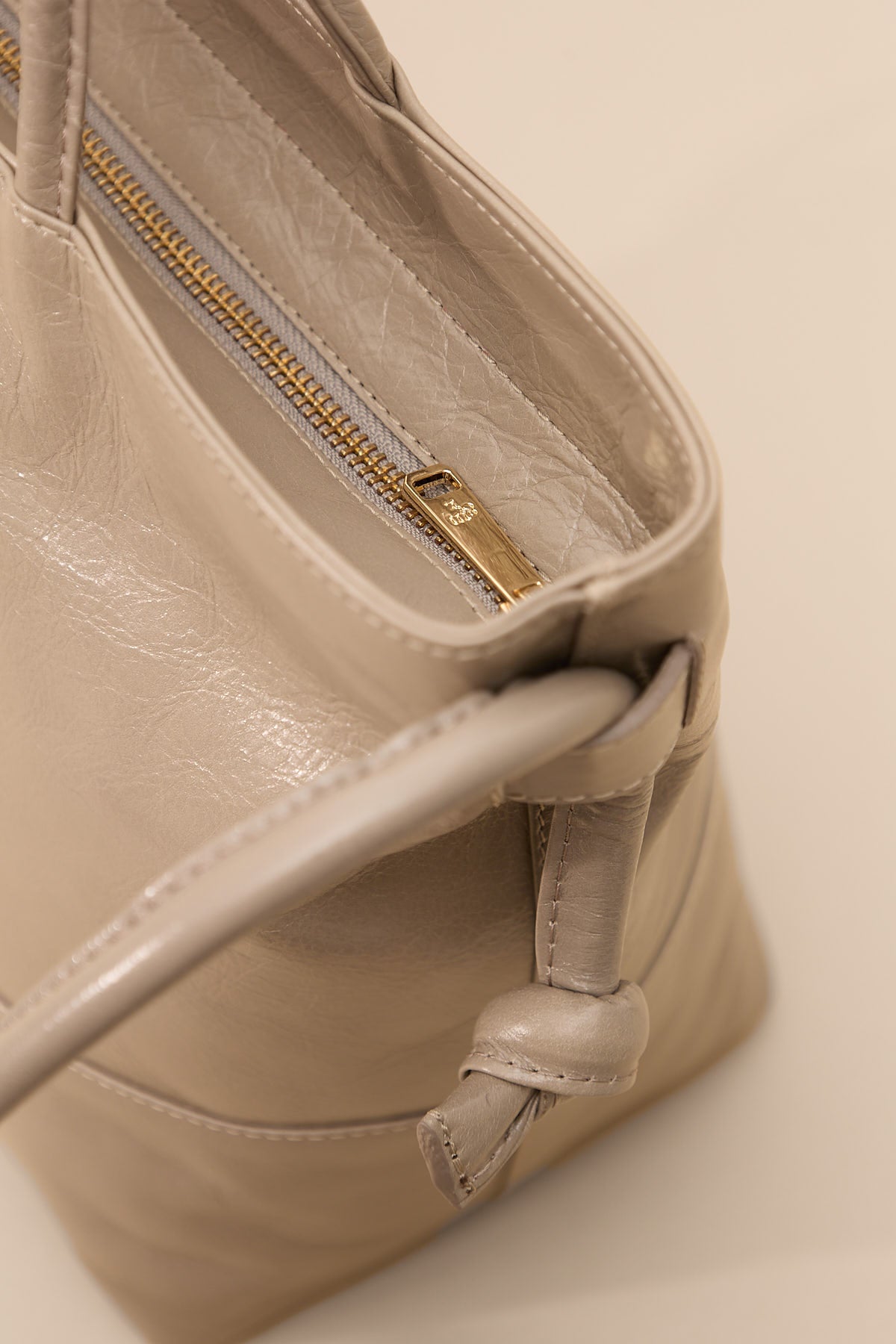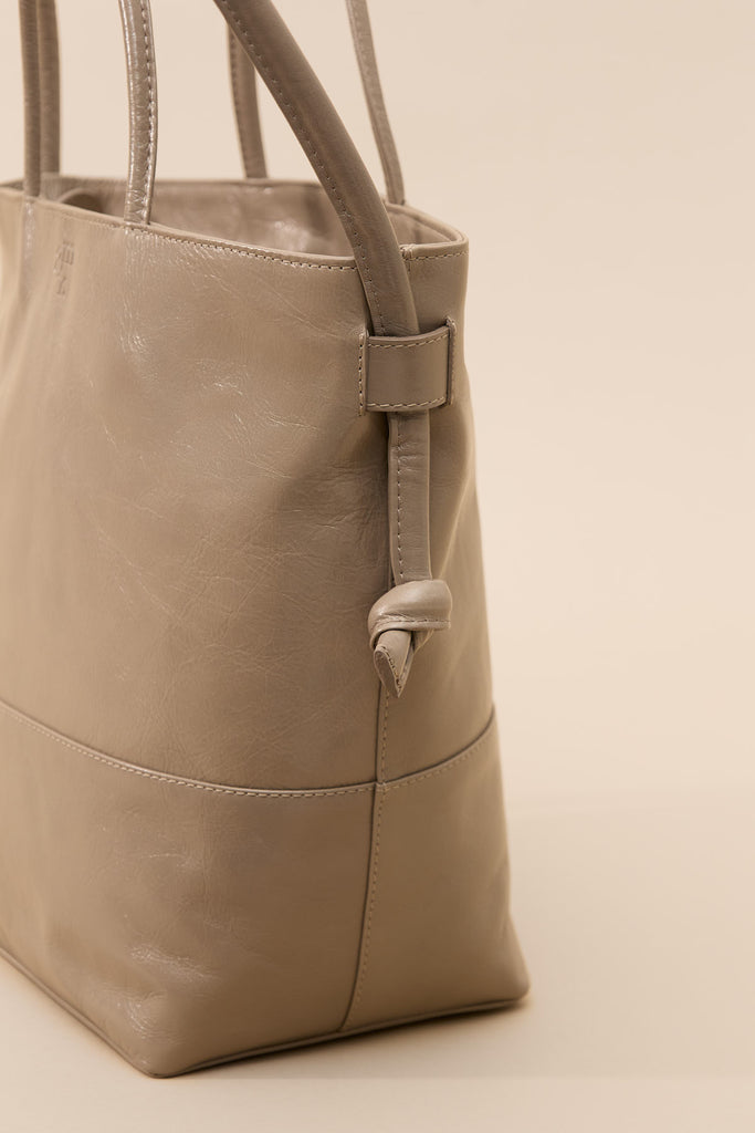 Handcrafted production made in Spain by experts in leather treatment, carefully selected materials and extremely soft leather are Calvia's calling card. In this bag, with its minimalist silhouette, less is more. All its details help to create that air of subtlety: decorative stitching, tone-on-tone stitching, long adjustable handle with knot hook, short strap, and gold zipper. The interior is made of linen, it has a pocket and a bottom tray to maintain its shape. Measures 24 cm x 17 cm x 28 cm.