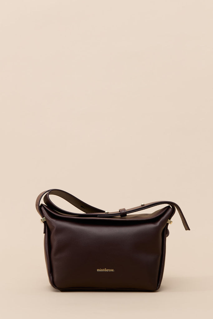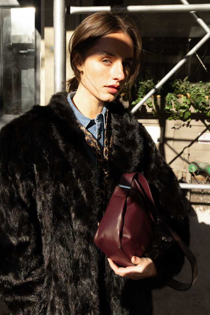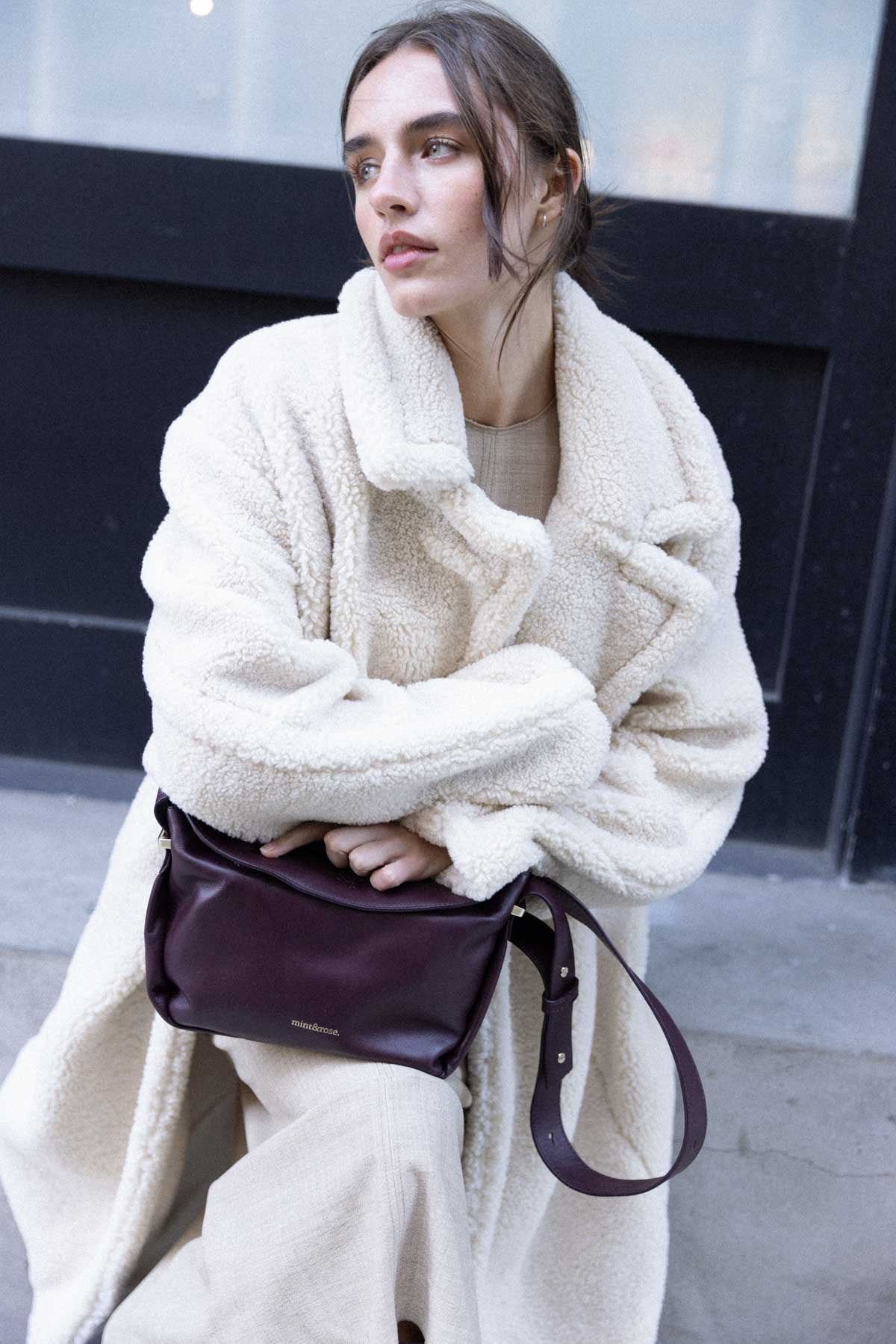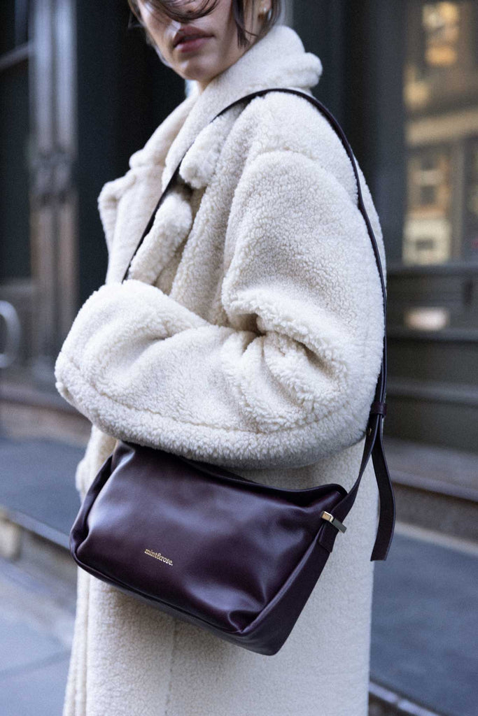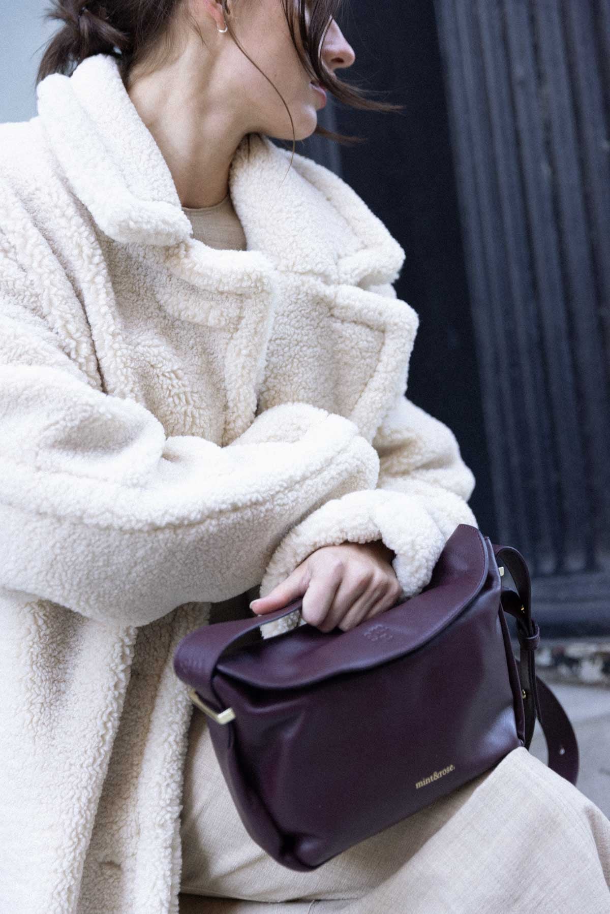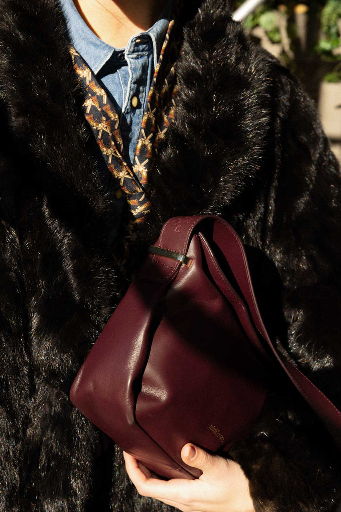 Medium trapezoid leather bag in burgundy