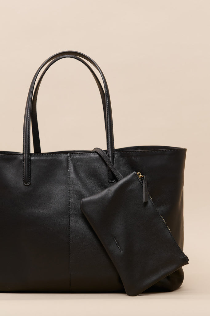 Black leather shopper bag