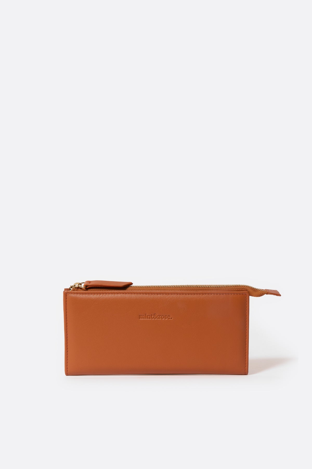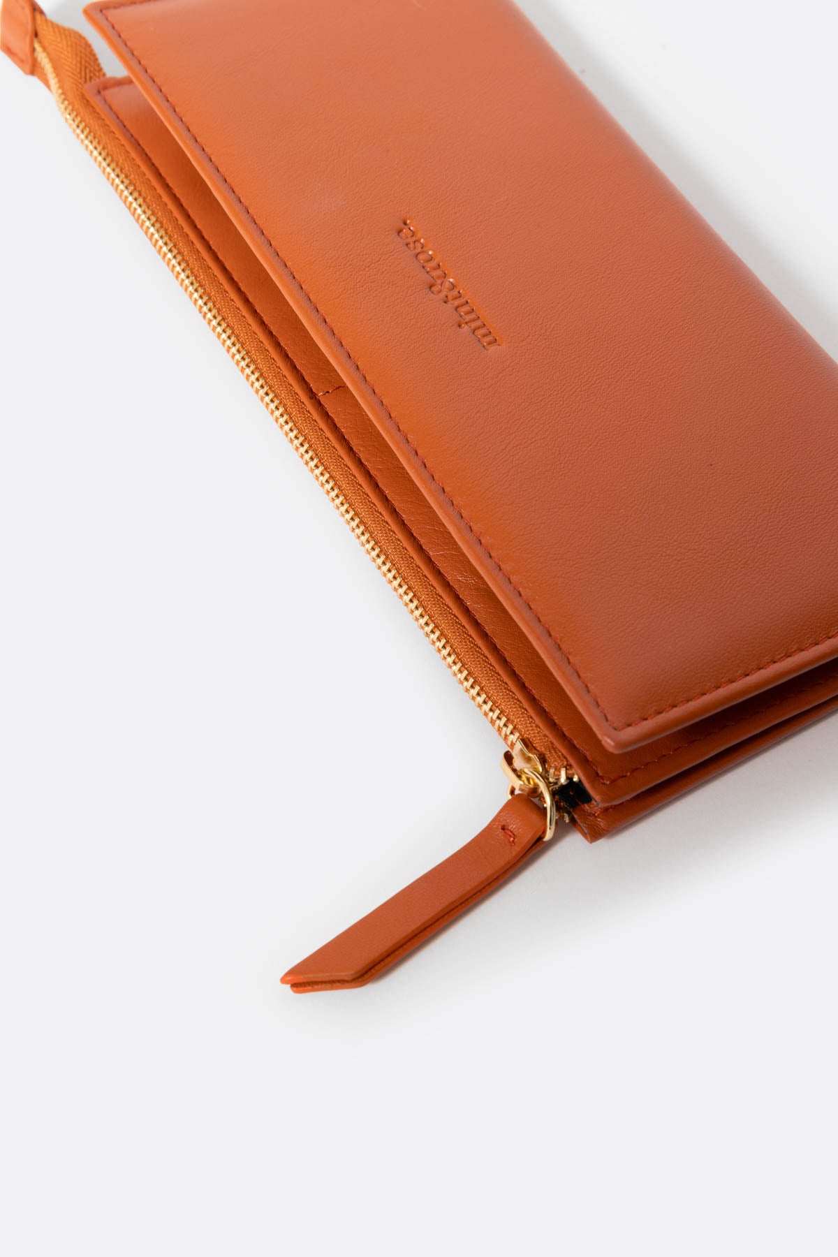 Durable leather wallet, double pocket with gold-plated zippers. It has several compartments for cards. Handles and side zippers in the same color and logo engraved on fire.