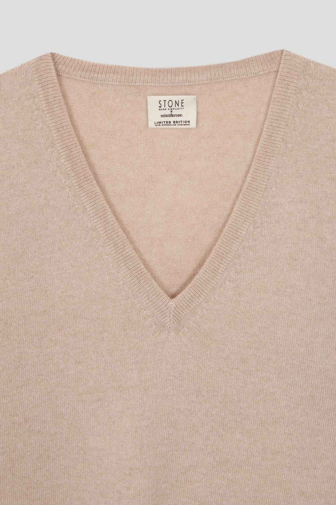 Stone sweaters are made from the softest and highest quality cashmere. Made in Mongolia, they provide a pleasant sensation of warmth and incomparable softness. V-neck sweater, ribbed cuffs and hem finish.