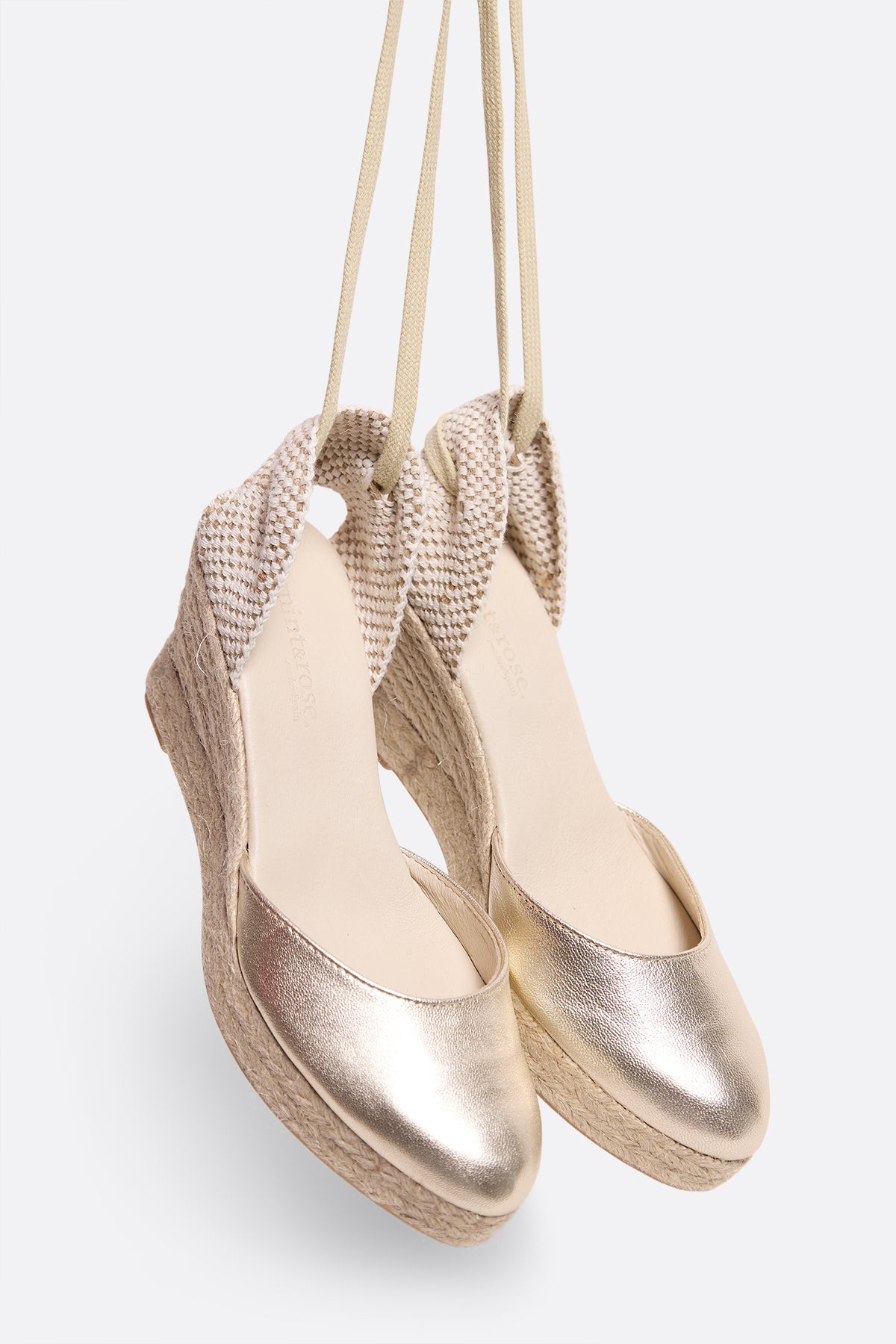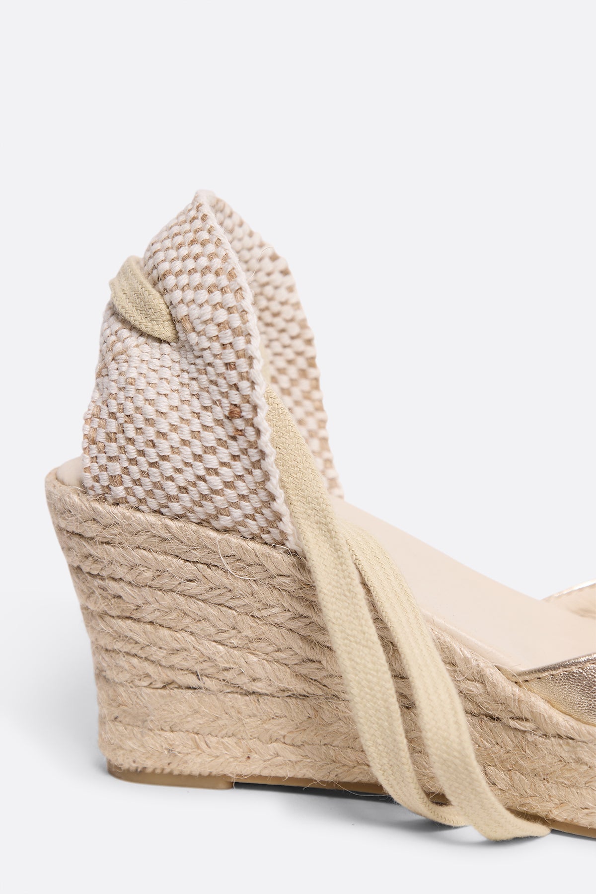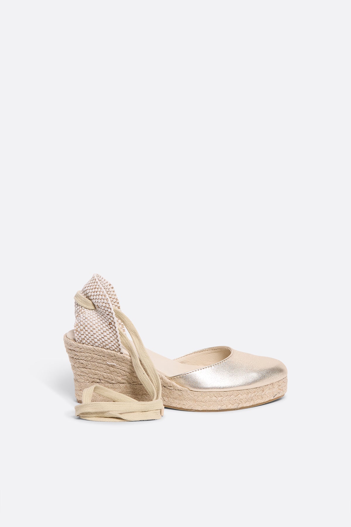 Mediterranean design, craftsmanship, and carefully selected materials come together to create the Chia wedge. A revamped classic with a very low-cut to slim the foot, slightly rounded toe, and straps that embrace the leg to ensure support. The wedge height is approximately 6cm (includes 2cm braided jute platform) and rubber sole.